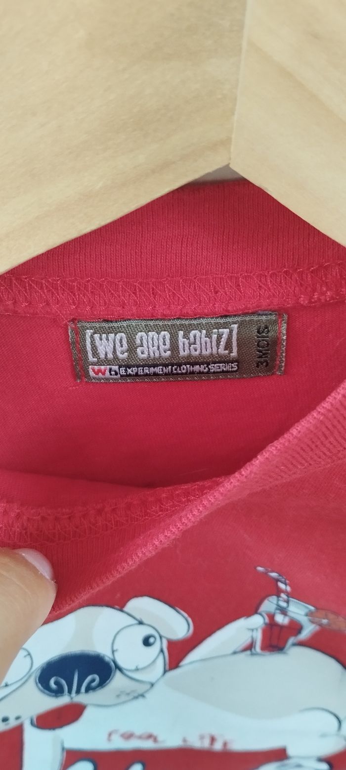 Bonjour, Je vends ce t-shirt ML pour garçon en taille 3 mois de la marque we are babiz en très bon état
