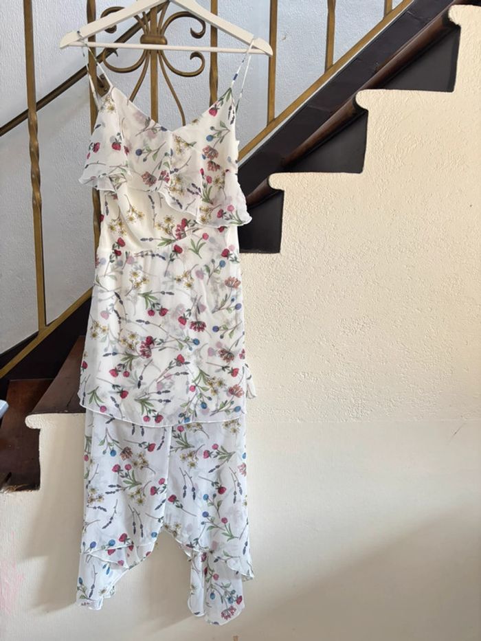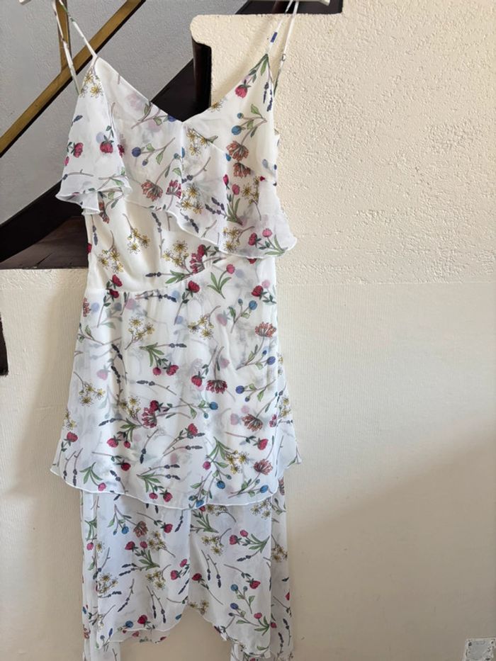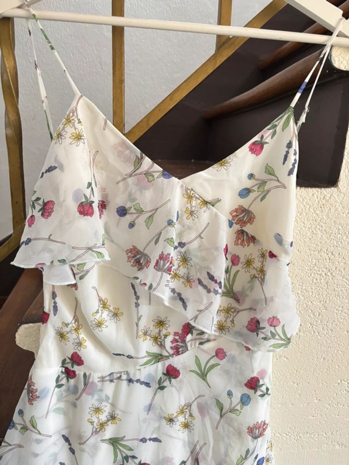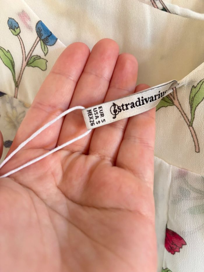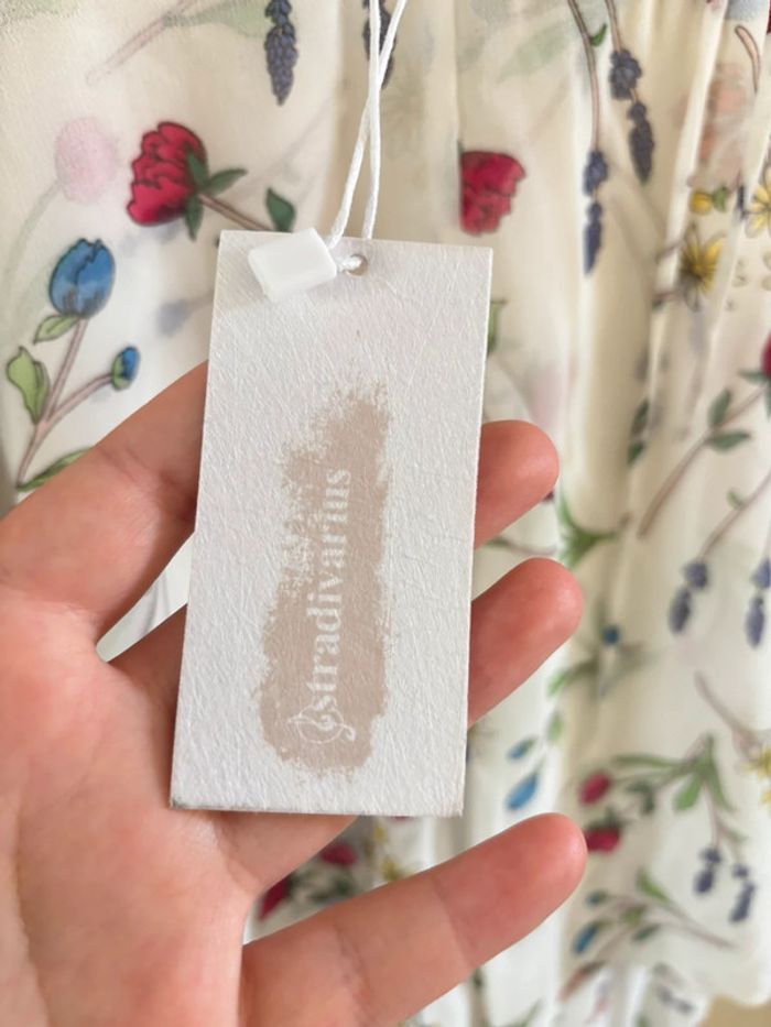 #robe #longuerobe #neuve #stradivarius #robevolant Lange jurk met ruches, gekleurde bloemen op een witte achtergrond. Ideaal voor evenementen, feestjes, bruiloften of verjaardagen. Luchtig en licht. Nieuw met label, perfect als cadeau.