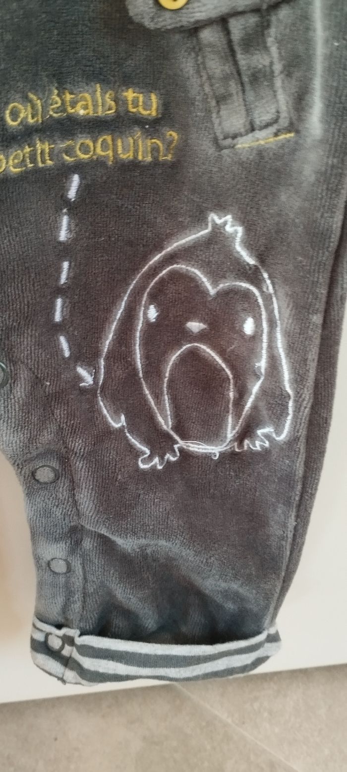 Bonjour, Je vends cette salopette pour garçon en taille 3 mois de la marque orchestra en très bon état
