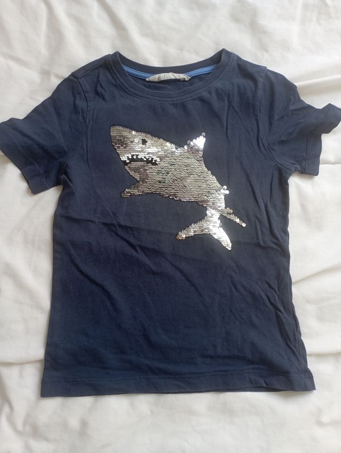 Tee shirt manches courtes bleu requin avec sequins 6 ans H&M neuf 3 € - photo numéro 1