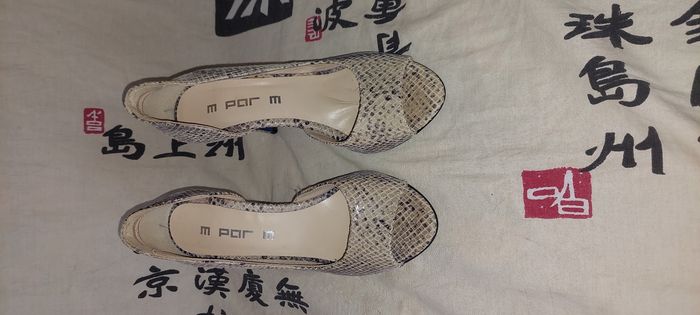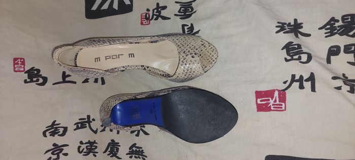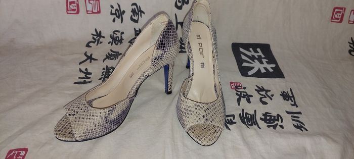Escarpins motif serpent. Open toes. En cuir. Pointure 35.