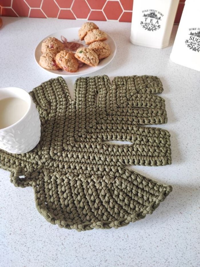 Dessous de plat tricoté à la main Matière polyester facile à laver à machine RMP à Paris possible #cadeaufaitmain #cadeaumaison #cadeaufemme #cadeauamie #cadeaucollegue #cadeauanniversaire #cadeauoriginale #cadeaupaques