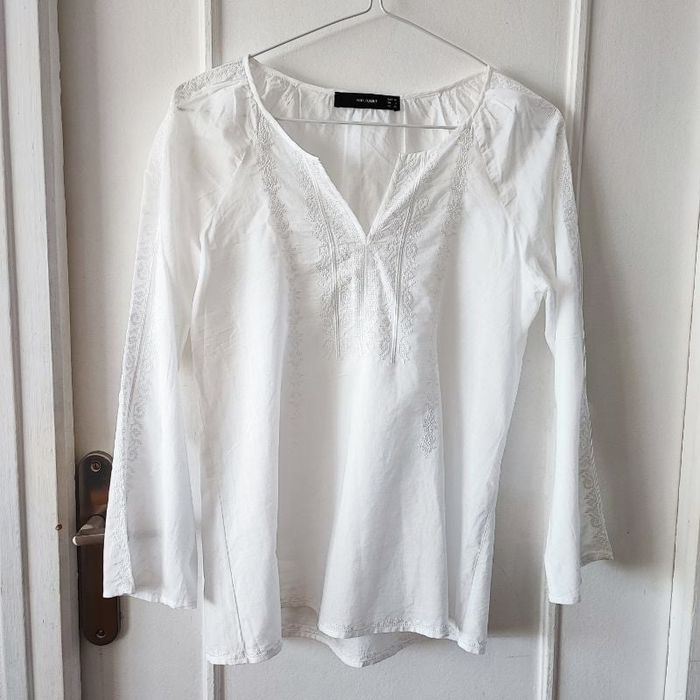Blouse transparente manches longues, chemise fluide,haut été brodee