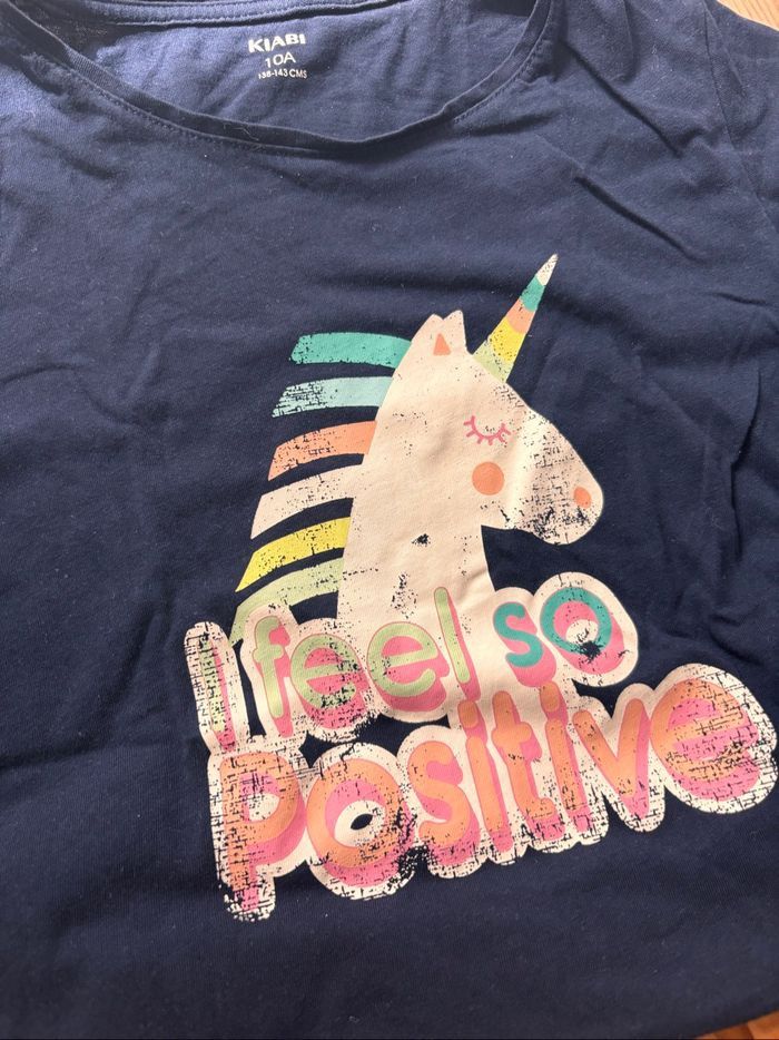 Ensemble jupe en jean moutarde et t-shirt marine licorne 8/10ans - photo numéro 4