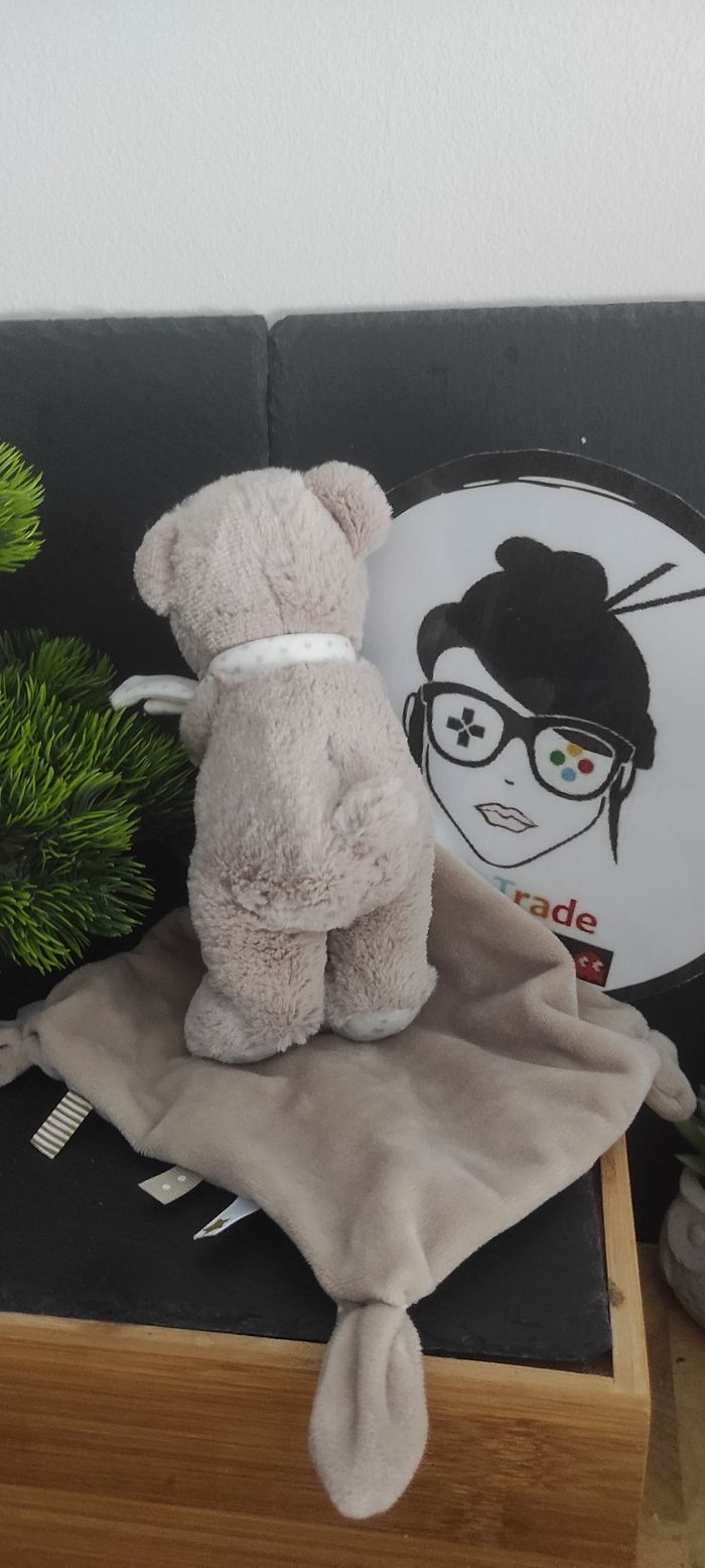 Doudou ours gris mouchoir étoiles beige blanc écharpe marron pommette DD003078 - photo numéro 1