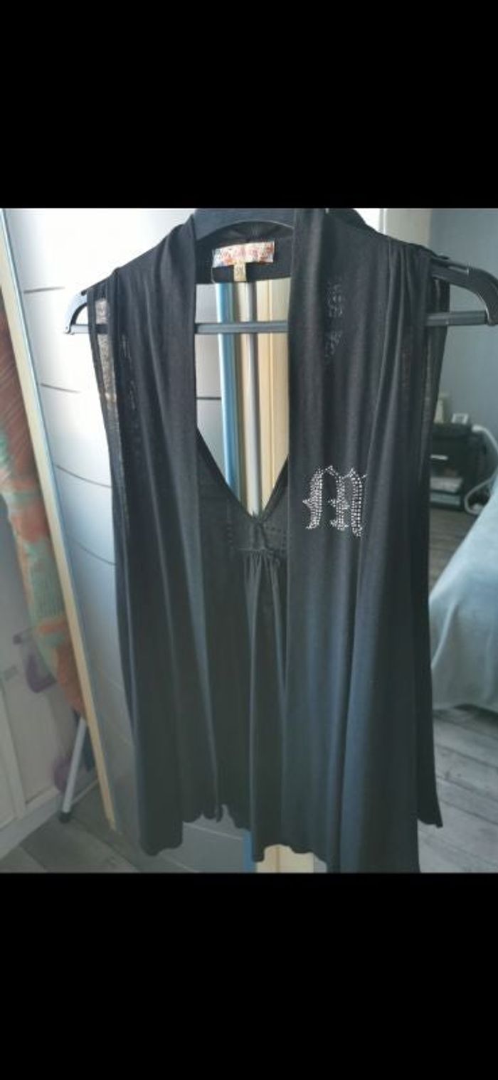 Gilet long My collection S/M sans manche avec strass, parfait état.