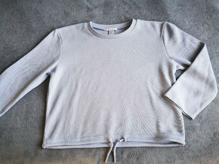 Pull court taille S bleu pastel, bien porté.