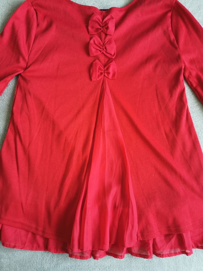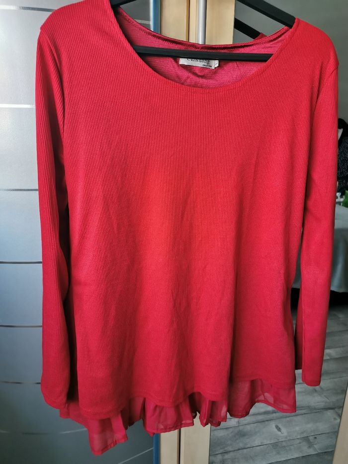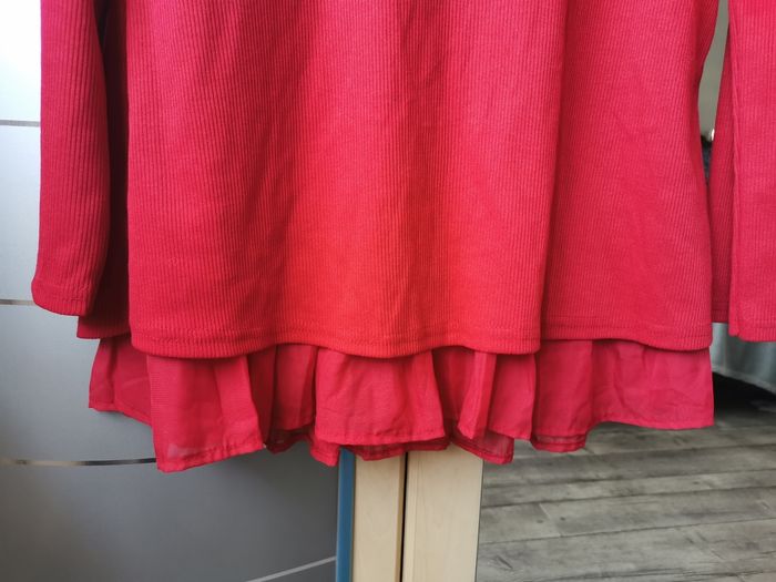 Tunique /pull fin peplum taille L, rouge bordeaux, 3 petits nœuds dans le dos, parfait état,jamais porté.