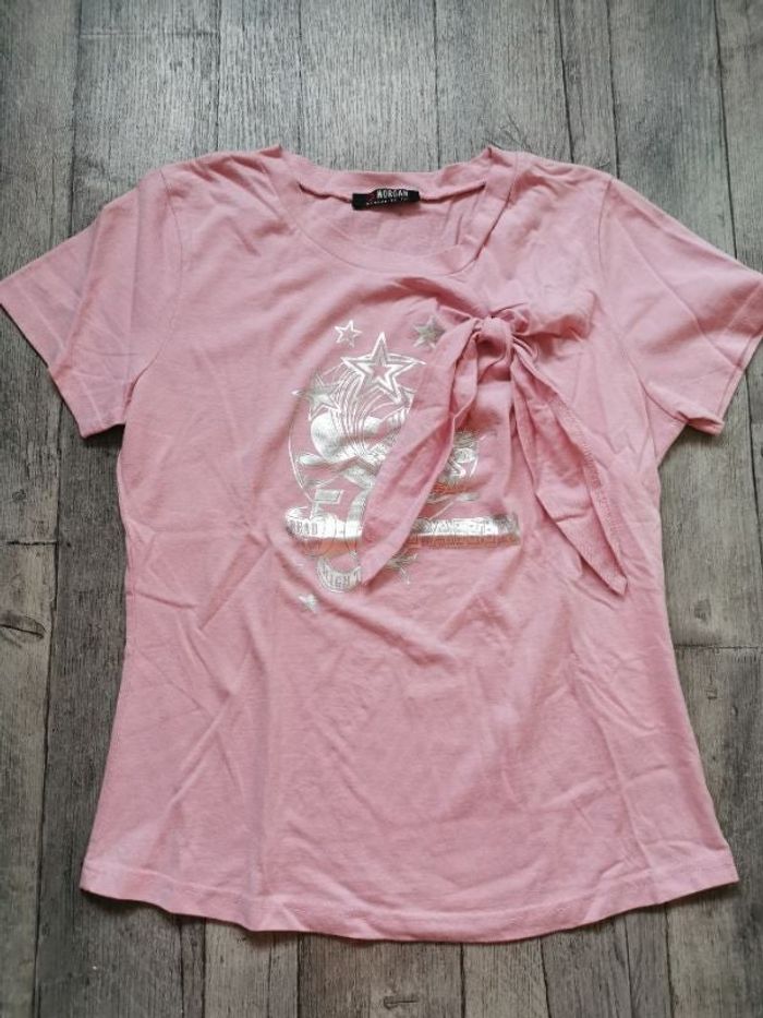 T-shirt rose Morgan avec nœud, jamais porté.