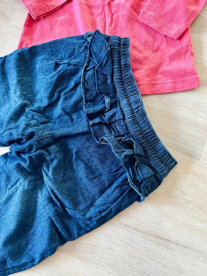 Ensemble comprenant : - 1 pantalon souple jean avec petits volants au dos Tape à l'oeil 6 M 67 cm. Ouverture pression jambes. - 1 T-shirt manches longues Tape à l'oeil 6 M 68 cm Possibilité de retrouver et d’acheter les articles à l’unité dans mon dressing. #tapealoeilfille #tao #tapealoeil #tshirtfille6mois #6moisfille #tapealoeil #tapealoeilfille #tao #taofille #jean #jeanfille #jeanbebe #6moisfille