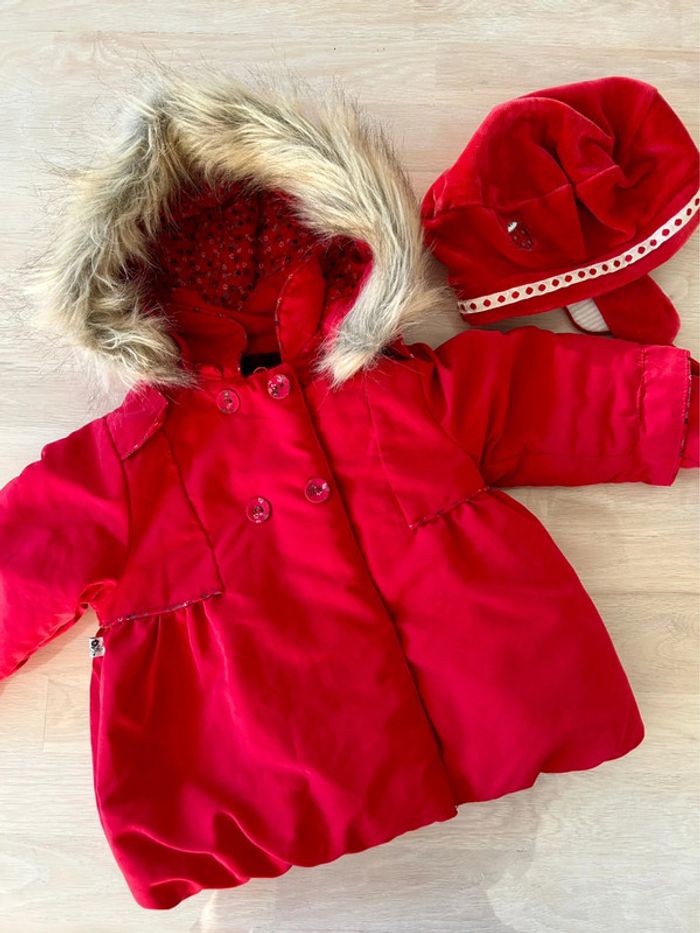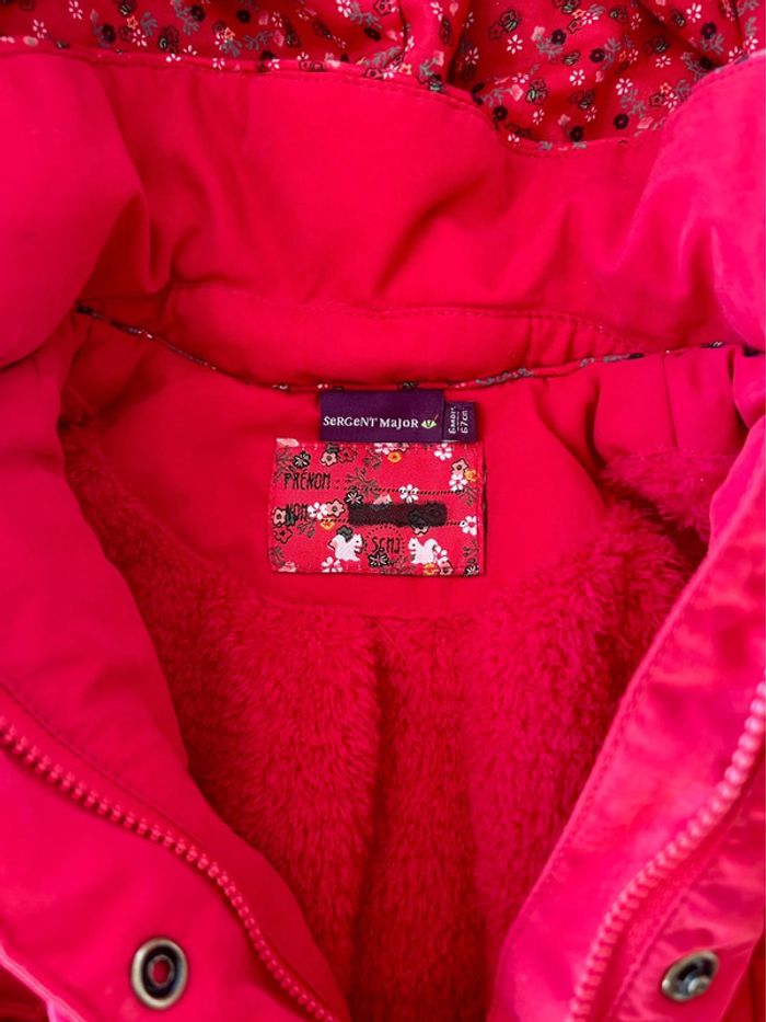 Lot comprenant : - 1 manteau Sergent Major 6 mois 67 cm. Doublée en polaire douce. 2 poches latérales. Fermeture boutons pression + fermeture éclair. Capuche + bordure en fausse fourrure amovibles séparément. Moufles amovibles par boutons pression. En excellent état proche du neuf. - 1 bonnet orchestra rouge coccinelle 🐞. Lanière deux position boutons à pression. Taille 47 cm. Couvre les oreilles. Possibilité de retrouver et d’acheter les articles seuls sur mon dressing. #orchestrafille #orchestrafille6mois #sergentmajor #sergentmajorfille #sergentmajor6mois #manteau #manteaubebefille #manteaubebe #6moisfille