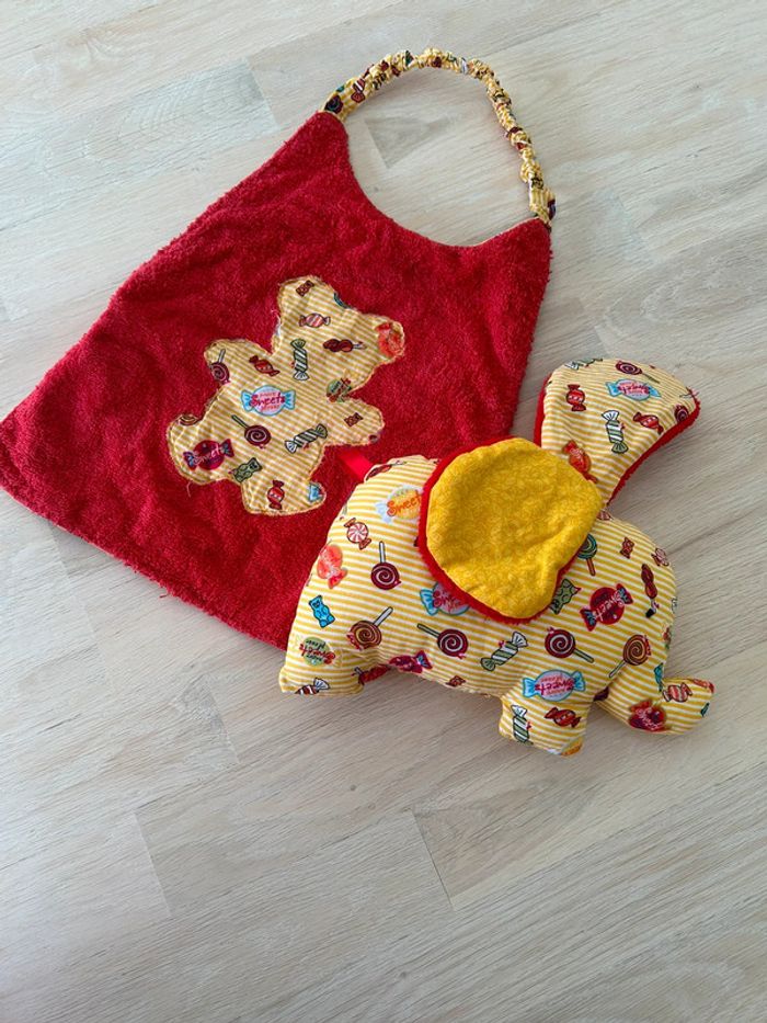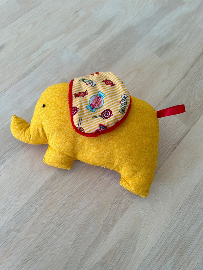 Doudou éléphant cousu à la main. Parfait état. J’offre le bavoir assorti (en bon état) cousu main également. #cousumain