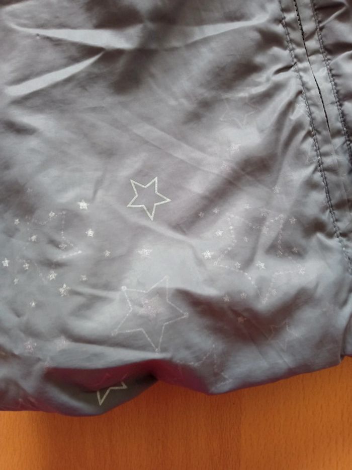 Manteau zippé avec capuche et moufles amovibles (par boutons pression). Marque Gémo Baby. 24 mois Doublé en polaire. Porté de nombreuses fois, les dessins des étoiles s'effacent (cf. Photo). #manteaufille #fille24mois #gemofille #gemo