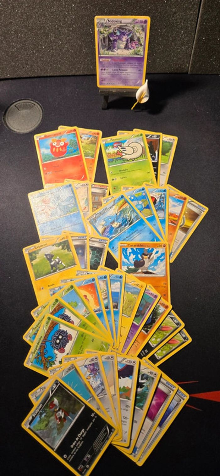 ENVOI UNIQUEMENT PAR COLISSIMO OU CHRONOPOST, MERCI !!! Lot de 37 cartes Pokemon Officiel ! Séries : Pouvoir émergent : 2 cartes Offensive vapeur : 20 cartes Explosion plasma : 3 cartes Vigueur spectrale : 3 cartes Primo choc : 5 cartes Noir et blanc : 3 cartes Clash des rebelles : 1 carte 35 cartes en français 1 carte en Italien 1 carte en anglais État satisfaisant