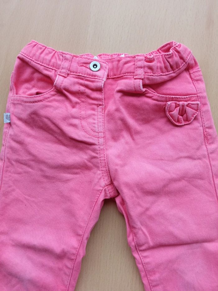 Pantalon en jean rose 18 mois. 4 poches avec détail noeud. Taille plutot grand.