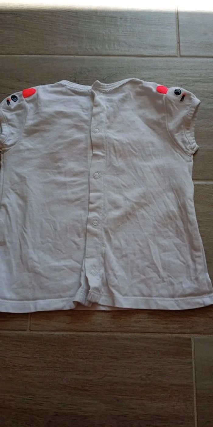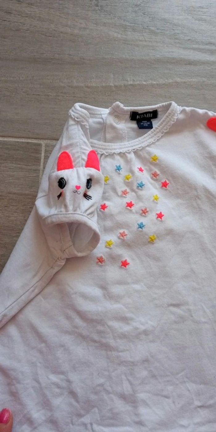 T-shirt manches courtes Kiabi 9 mois 69-72 cm 9 kg. Détail étoiles et petits lapins🐰 sur les manches. Ouverture pression dos. #kiabifille