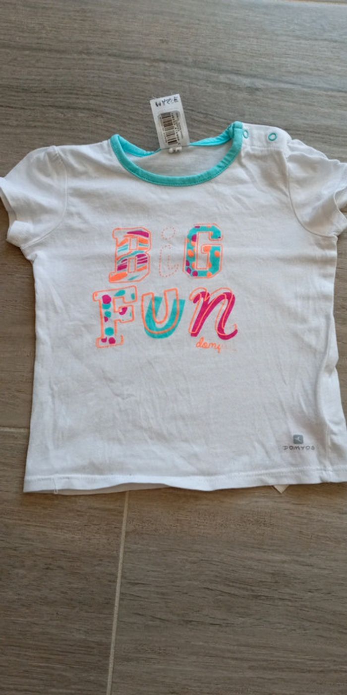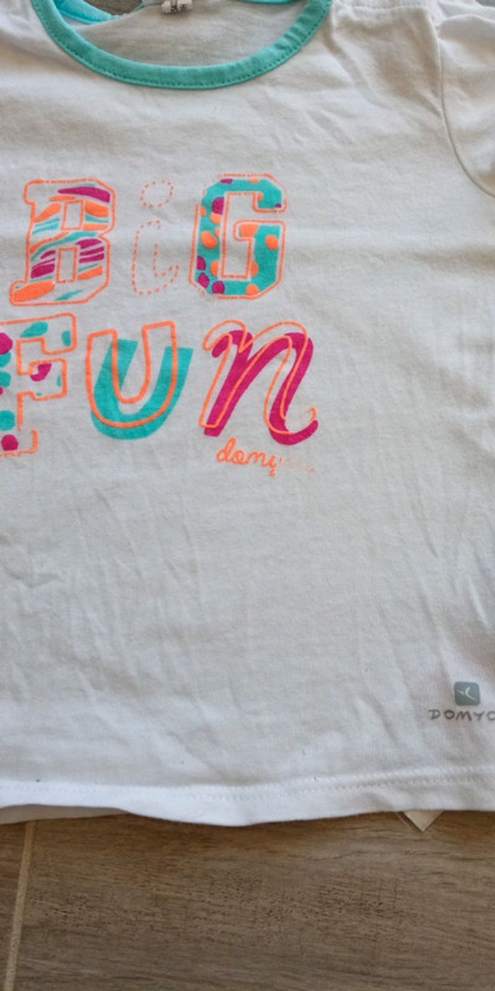 T-shirt manches courtes Domyos 12 mois 71-77 cm. Très bon état général sauf écriture légèrement effacée (cf. Photo)