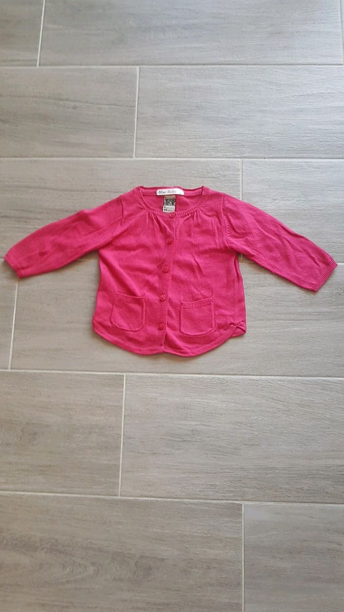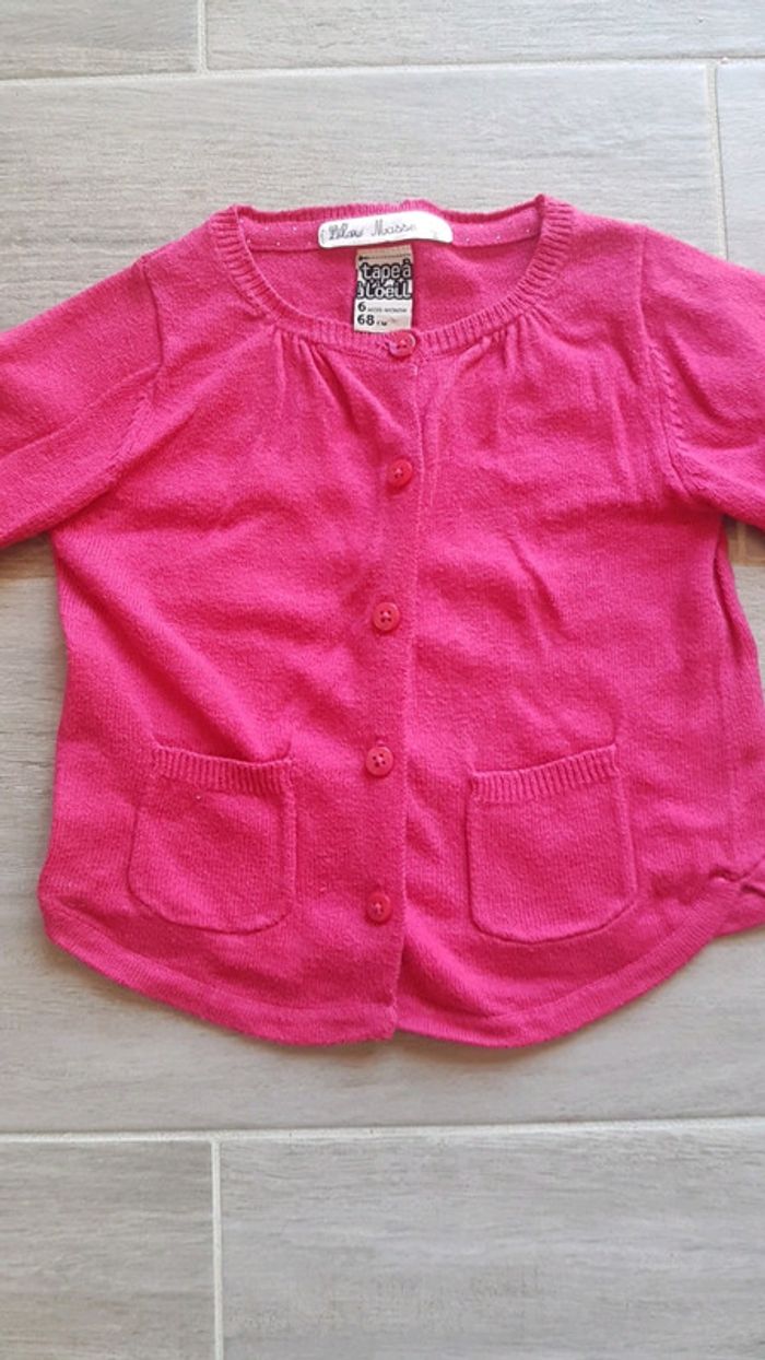 Gilet manches longues Tape à l'oeil 6 mois 68 cm. Couleur framboise. Ouverture à boutons. 2 poches. #tapealoeil #tapealoeilfille #tao #taofille #6moisfille #gilet #giletbebe #giletfille
