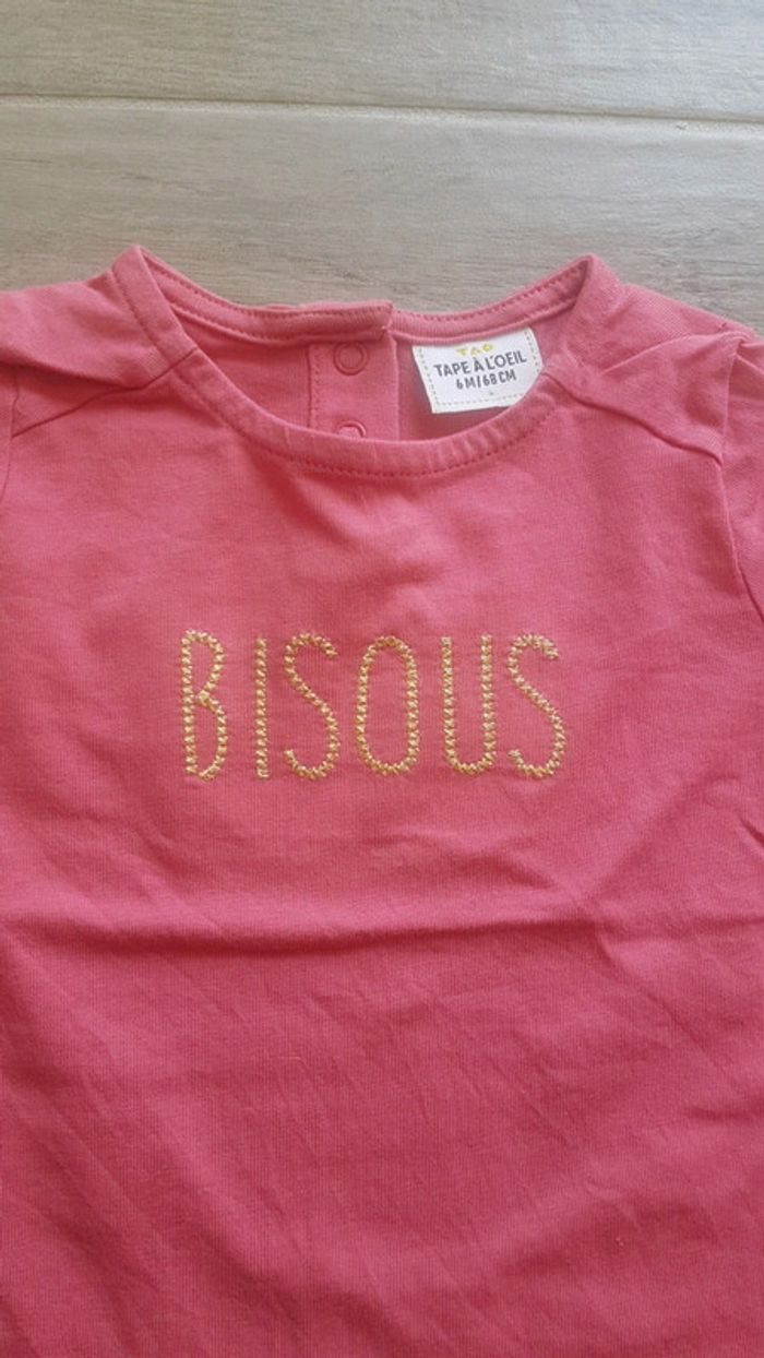 T-shirt manches longues Tape à l'oeil 6 M 68 cm. Très bon état. #tapealoeilfille #tao #tapealoeil #tshirtfille6mois #6moisfille