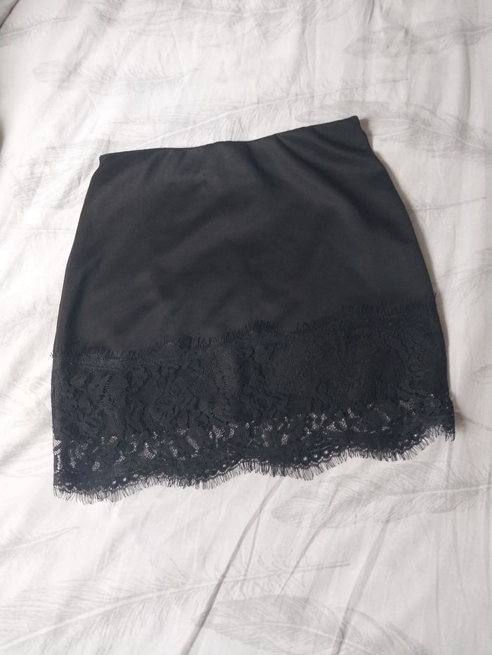 Tissu fluide et doux, avec une jolie finition en dentelle noire sur le bas pour une touche féminine et chic. Élastique à la taille – très confortable à porter. 📏 Longueur : 37 cm 📌 Taille S (voir étiquette en photo) 📍 Très bon état ✨ Parfaite avec un top moulant ou un pull oversize pour un look stylé ! #jupe #dentelle #noir #mim #tailleS #jupefemme