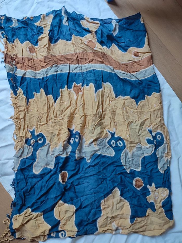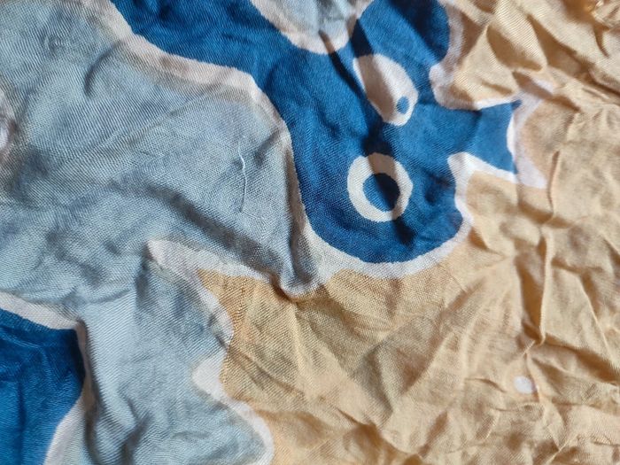 #iansoloaccessoires Joli paréo beige crème et bleu bon état car quelques accrocs