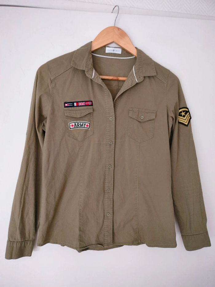Chemise Kaki Cache Cache Une tâche dans le dos! Reste en bon état Taille 3 qui taille petit. Conviendra pour une taille M/38 #aedenml #aedenhuit #cachecache #chemisemilitaire #cachecache