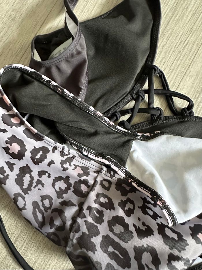 Maillot de bain léopard une pièce noir gris et rose T38 M - photo numéro 3