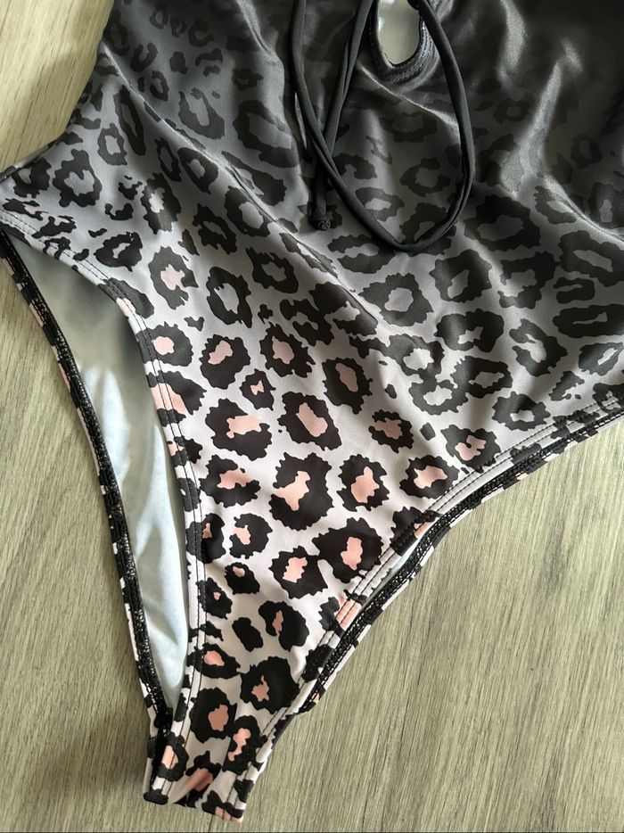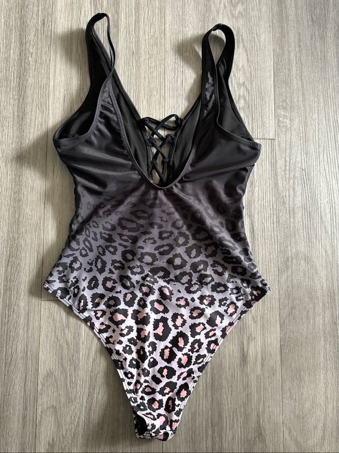 Maillot de bain léopard une pièce noir gris et rose T38 M - photo numéro 5