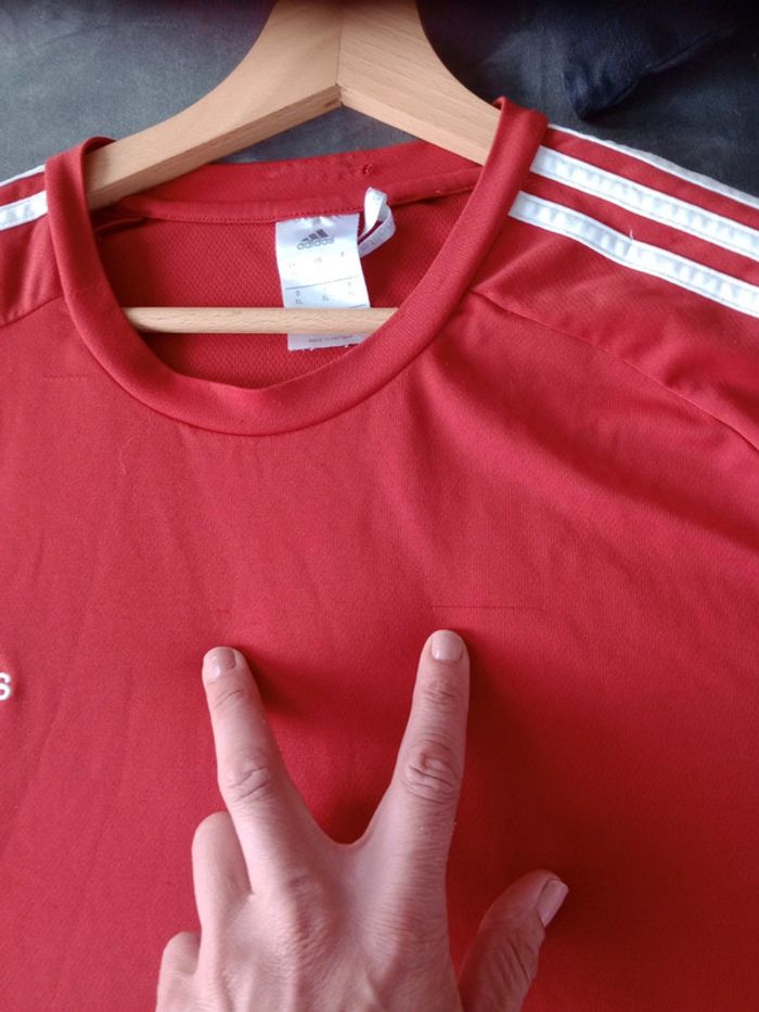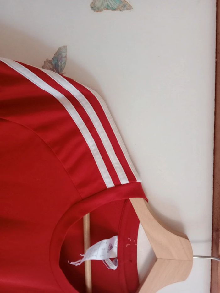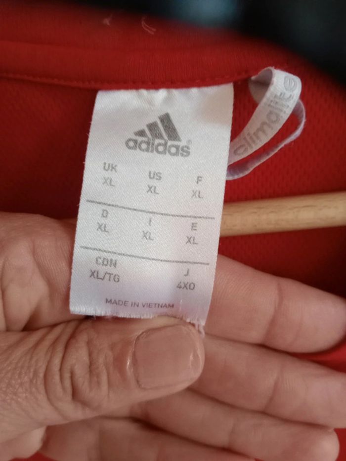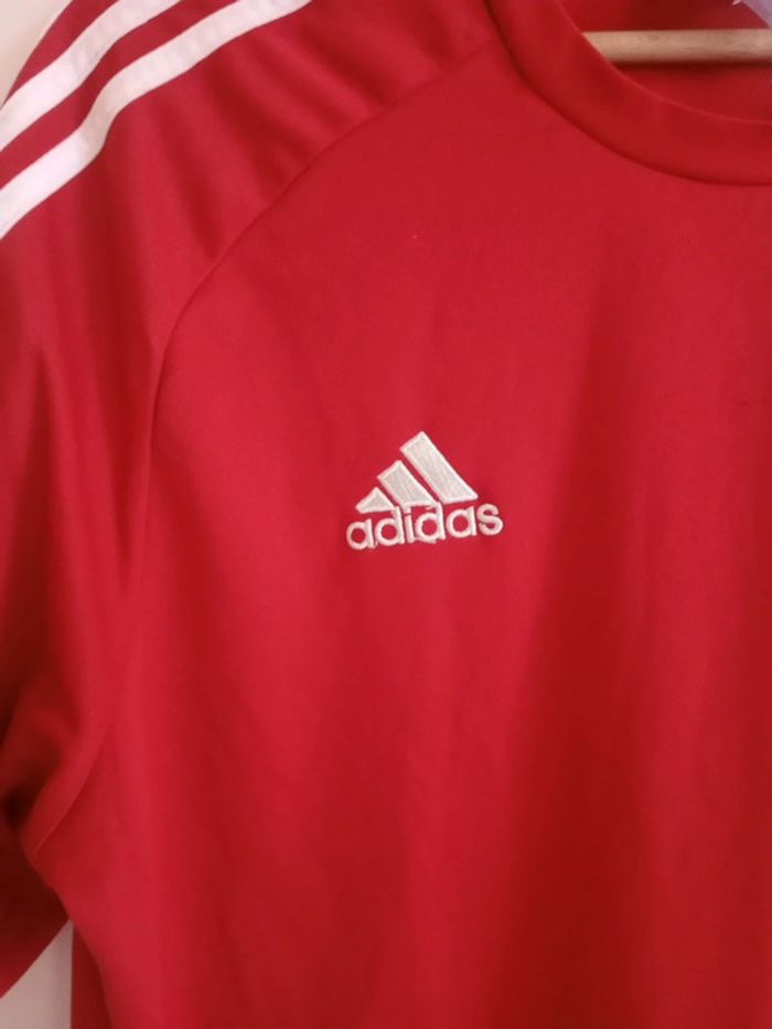 Col rond Intérieur type technique... Logo Adidas à droite, les trois bandes au niveau des épaules Un bandeau blanc dans le bas Quelques petits accrocs que vous pouvez voir sur les quatre dernières photos... Cela reste minime il reste en très bon état... Avec quelques imperfections Longueur 77 cm Aisselle 60 cm #carineleray_homme