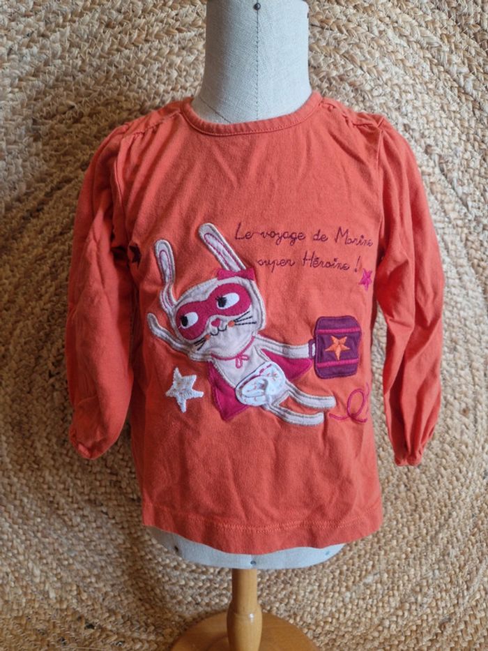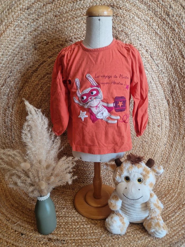 Jolie haut à manche longue orange lapin fille du pareil au même 23 mois 86cm