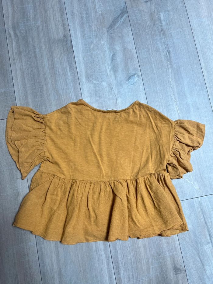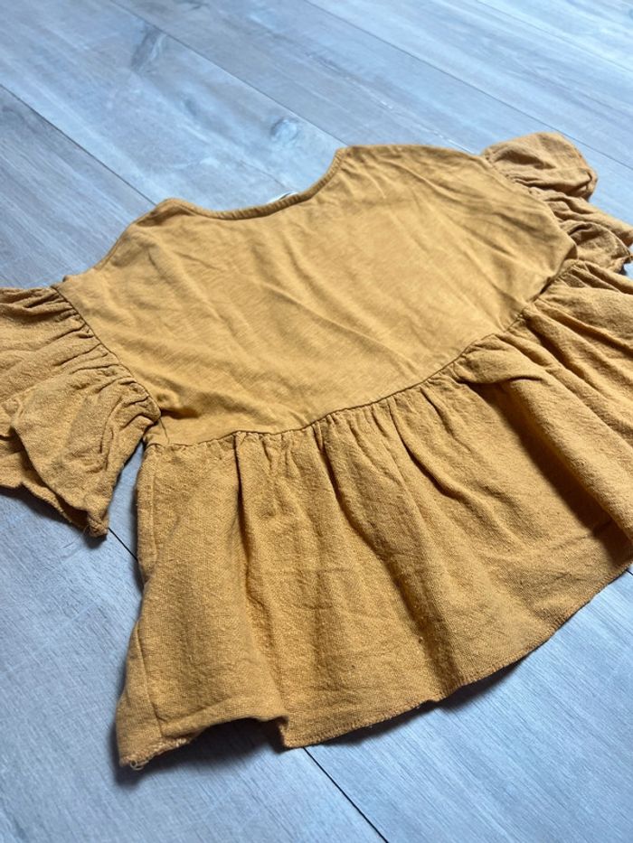 Petite blouse double matière avec manches chauve souris. Couleur jaune moutarde.
