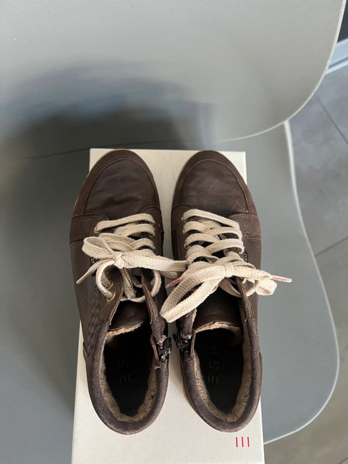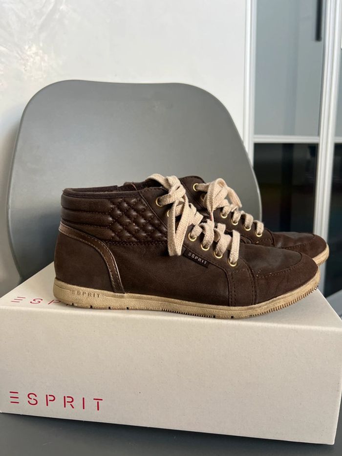 Taille 37 Marque : Esprit Baskets montantes fourrées Quelques griffures ✔️ Maison non fumeur ✔️ Pas d’animaux même si on les aime beaucoup. ✔️ Des articles sont mis régulièrement en ligne ✔️ N’hésitez pas à faire des lots.