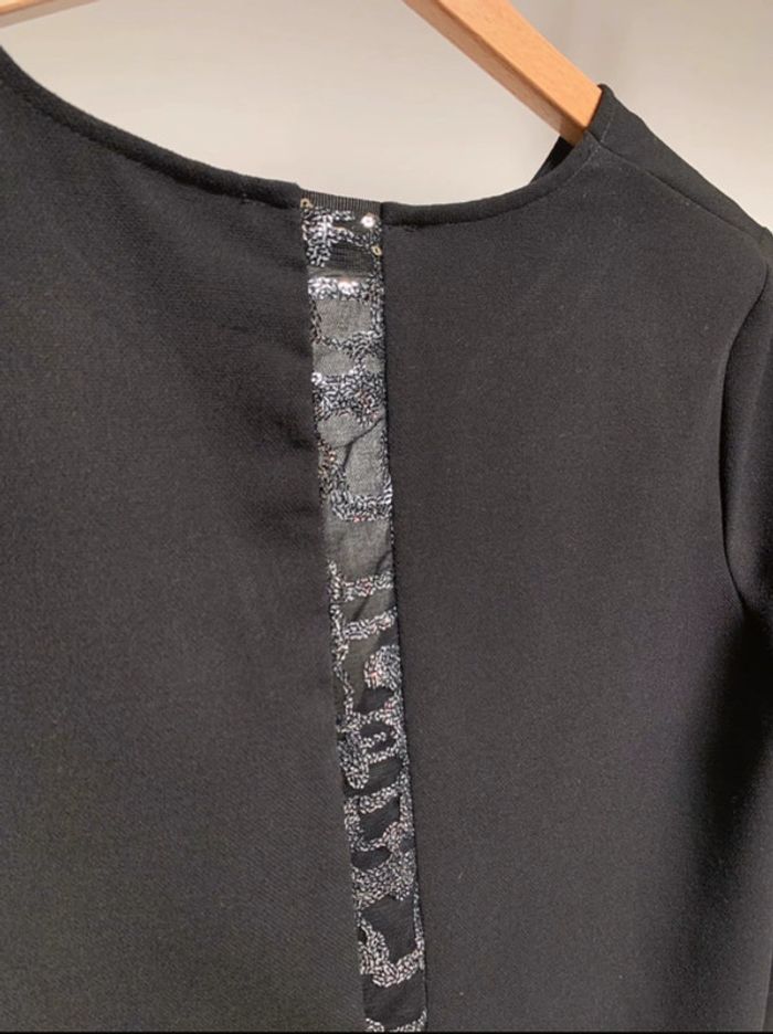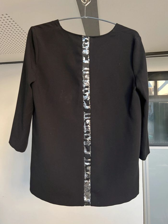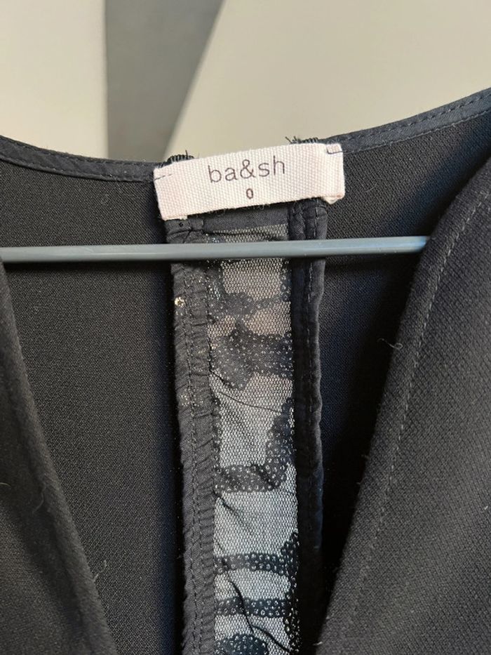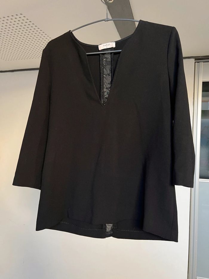 Taille 0 pour ce haut noir de la marque Bash. Sa touche d’originalité avec sa bande en bretelle dans le dos.