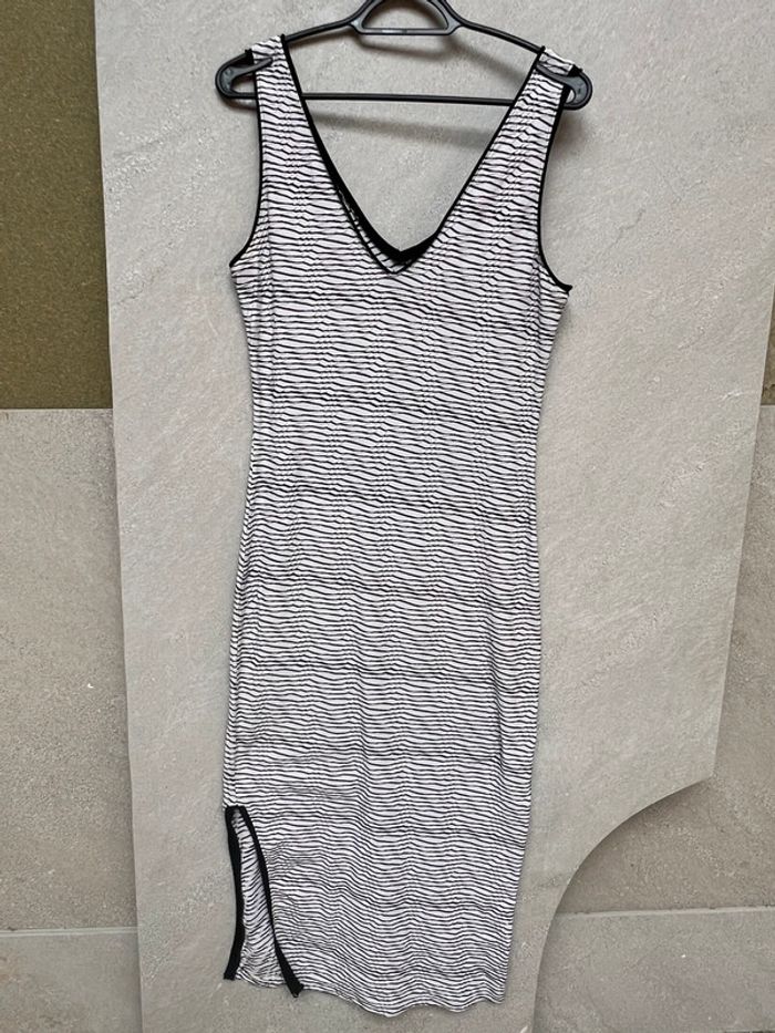 Mango Taille M Robe prêt du corps élastique, marinière bleu marine et blanc, fente sur le côté Robe longue ✨ Maison non fumeur ✨ Pas de poils d’animaux ✨ Plusieurs articles dispo en taille M sur mon dressing, proposez moi des lots. #tagali77