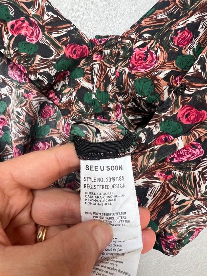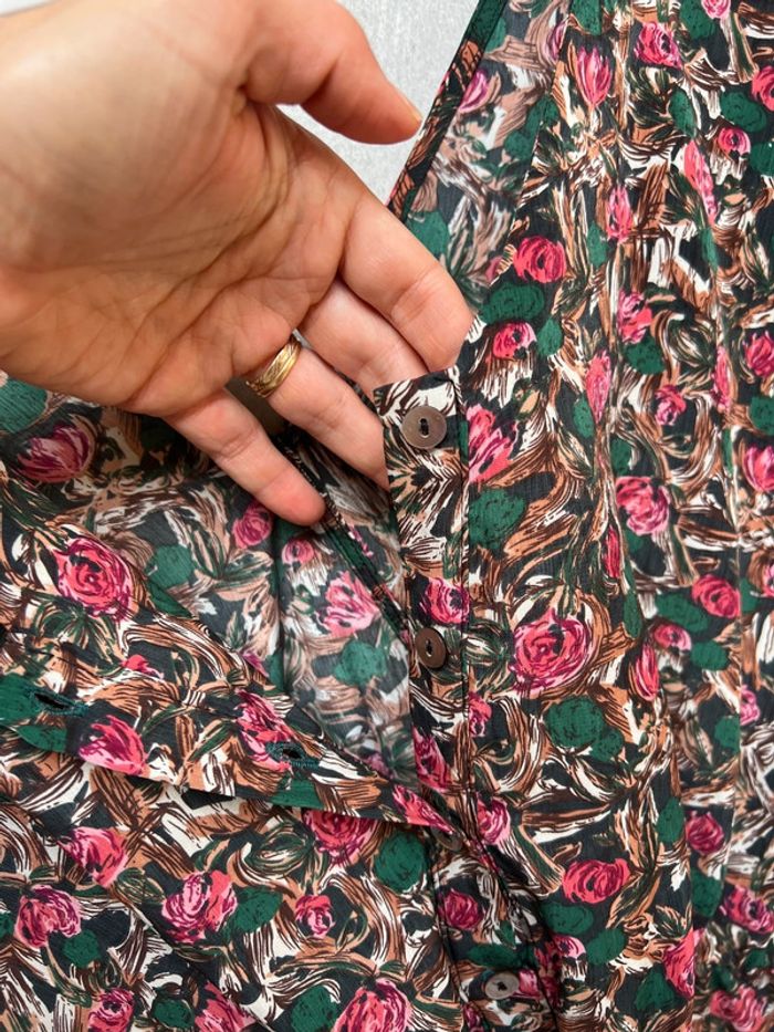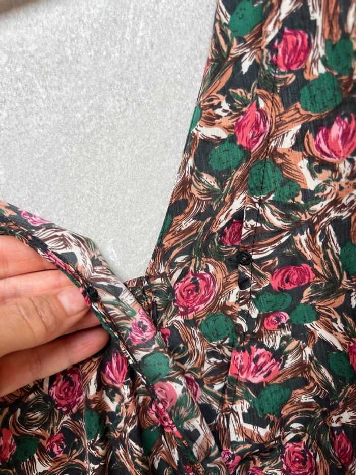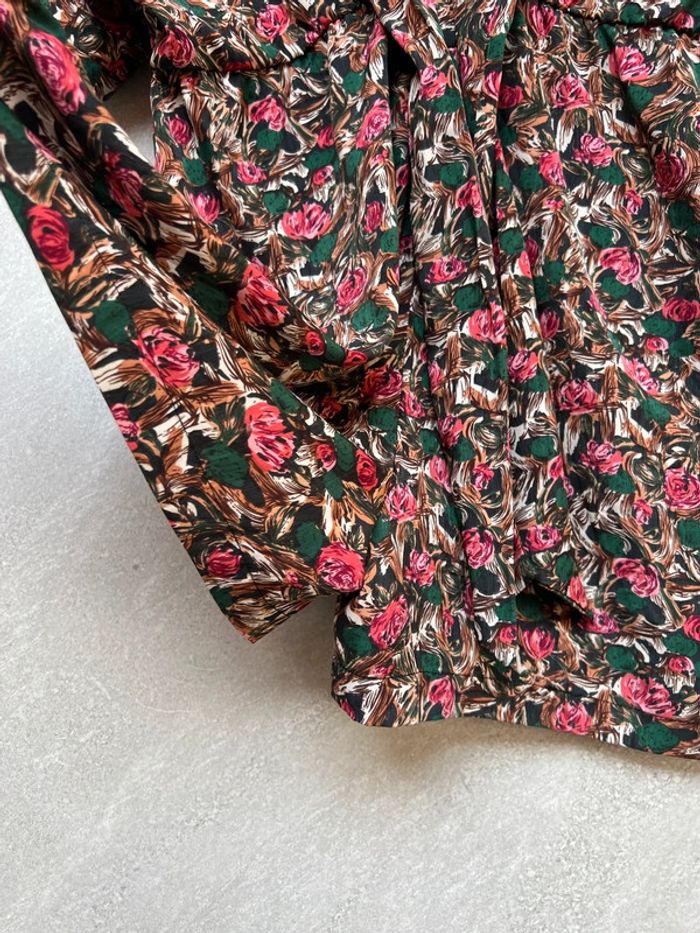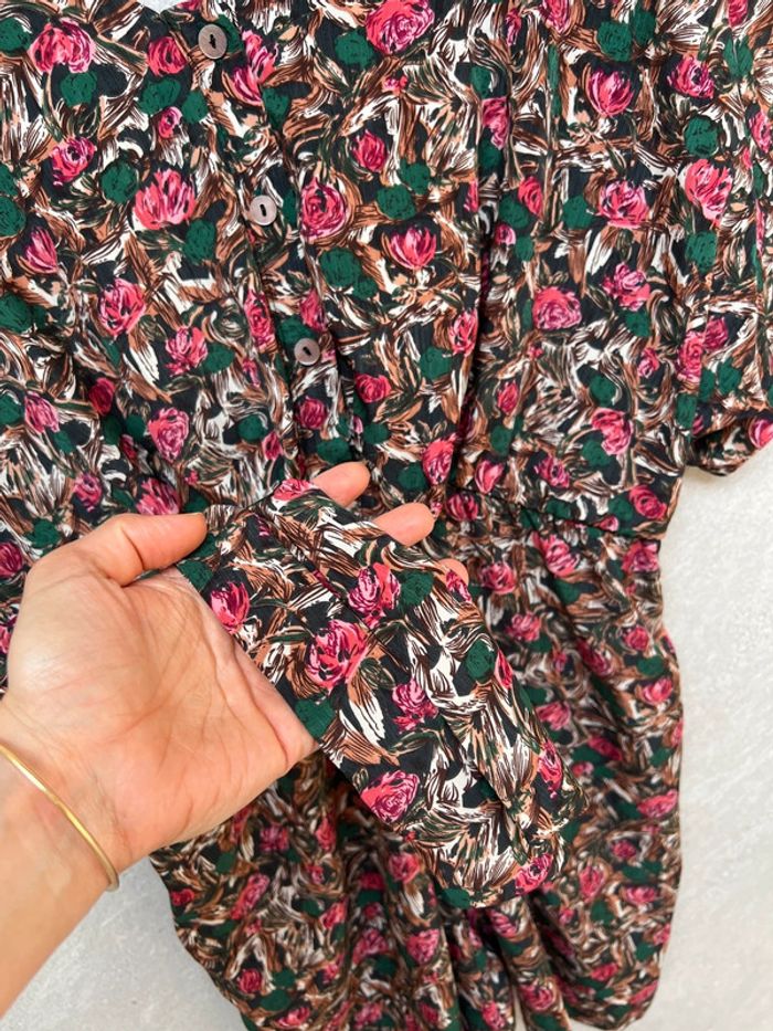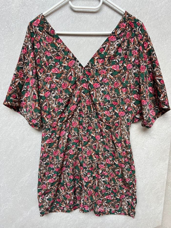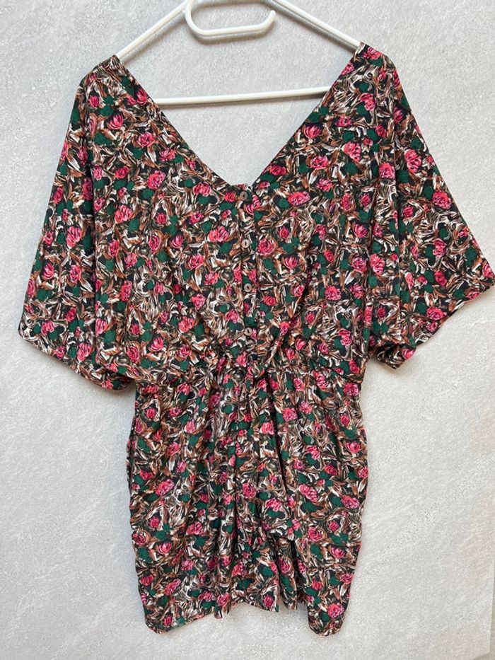 Très jolie combishort. On peut la porter des deux cotés. Les boutons devant ou derrière. Tissu agréable, ne se froisse pas. Taille 1 correspond à un 34/36