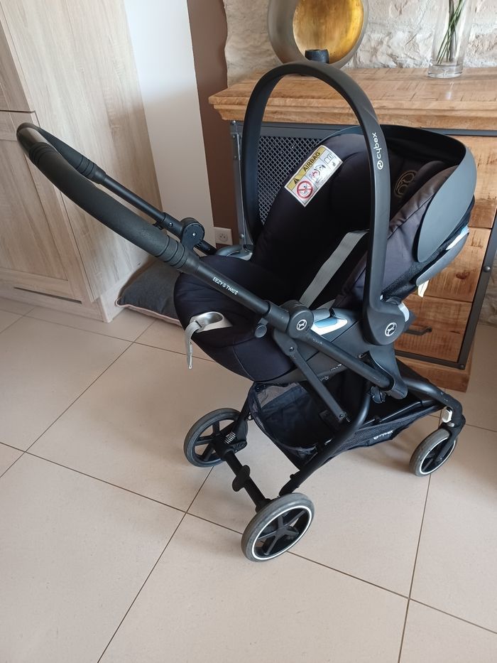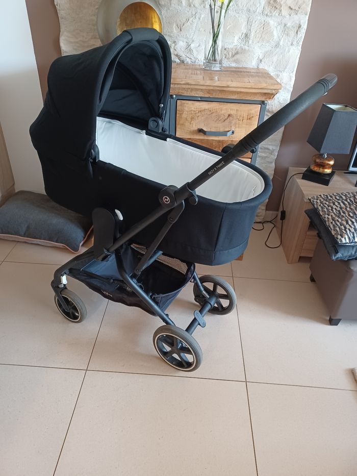 Vends poussette Cybex Eezy Twist S noire avec nacelle, siège auto+base Z isize noire avec deux protèges pluie, (à part les côtés tissu du siège auto un peu éclaircis par le soleil) en très bon état (après 1 enfant), nacelle comme neuve, très propre avec toutes parties tissu récemment lavées. Poussette très pratique, facile à plier/déplier, possibilité de tourner l'enfant face ou dos à la route, adaptateurs pour mise de siège-auto et nacelle sur poussette, idéale pour petits coffres de voiture. Prix d'origine 1150€, prix de vente 320€ avec tous les accessoires.