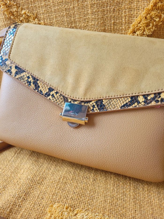 🌞 PROFITEZ DES RÉDUCTIONS SUR LES LOTS !!! 🌞 Sac à main pochette moutarde camel élégant CAMAIEU Couleur réelle sur la 3 et 4 ème photo Avec bandoulière, Motif effet serpent, bi matière 24x17cm, plusieurs compartiments Très bon état #cheyenne6870femmetailleunique 🌻N’hésitez pas à me contacter pour toutes informations ou photos supplémentaires.🌻