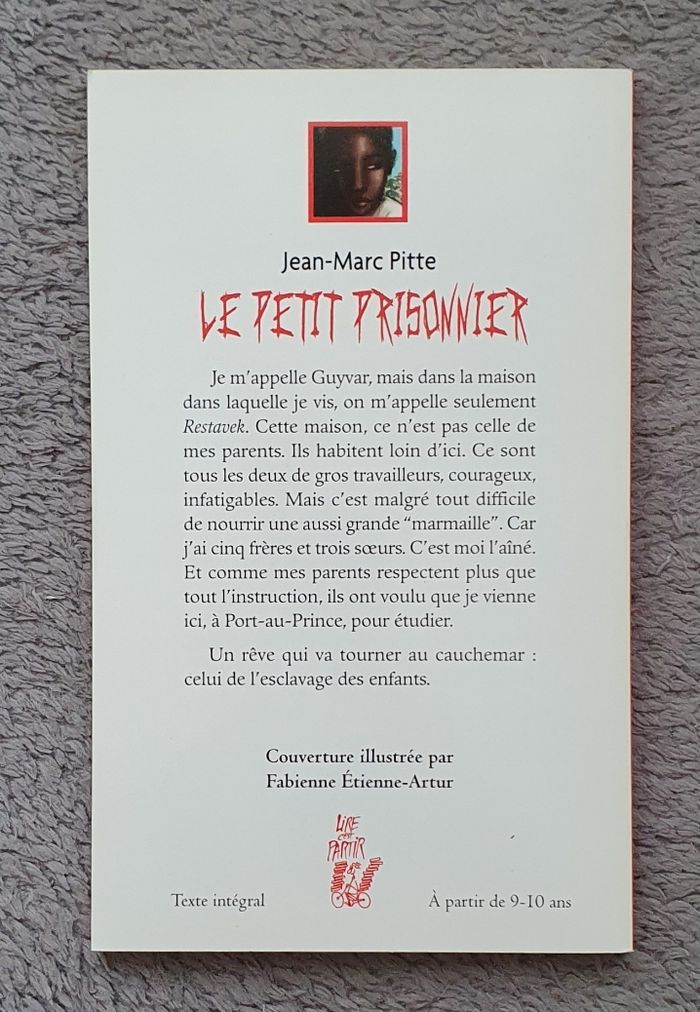 Résumé : Je m’appelle Guyvar mais dans la maison dans laquelle je vis, on m’appelle seulement Restavek. Cette maison, ce n’est pas celle de mes parents. Ils habitent loin d’ici. Ce sont tous les deux de gros travailleurs, courageux, infatigables. Mais, c’est malgré tout difficile de nourrir une aussi grande «marmaille». Car j’ai cinq frères et trois soeurs. C’est moi l’aîné. Et comme mes parents respectent plus que tout l’instruction, ils ont voulu que je vienne ici, à Port-au-Prince pour étudier. Un rêve qui va tourner au cauchemar : Celui de l’esclavage des enfants.. Année de parution : 2016. Auteur : Jean-Marc Pitte. Illustratrice : Fabienne Étienne-Artur. Éditions : Lire, c'est partir! =) 96 pages. Très bon état général, juste de très légères traces d'usage (à peine visibles) sur la bordure basse de la 1ère de couverture. Intérieur du livre nickel!