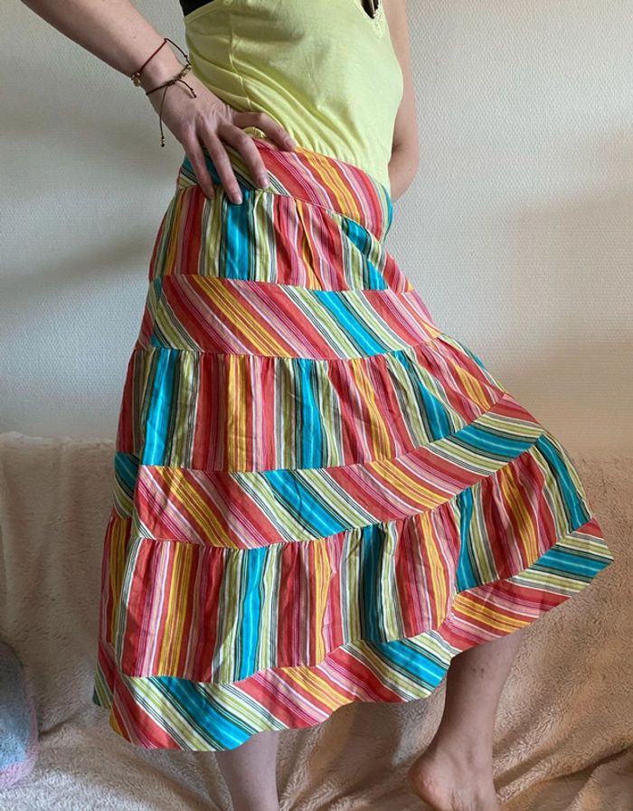 Superbe jupe ideale pour l'été, pleine de couleurs et originale De la marque women'secret Taille 38 #jupe #gitane #jupegitane #jupecoloree #pleindecouleurs #couleurs #colore #summervibes #plage #jupelegere #hippie #vintage #festival #ete #femme38 #bohemian #boheme #woman #womensecret #vintagehippie #skirt #falda #vintagecolore #womensecret #plage #rayures #dafnez38 #dafnezfemme #dafnezado #dafnezete