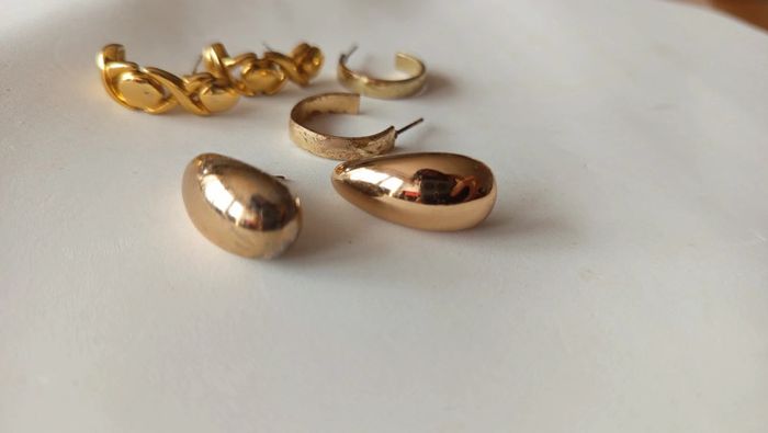 3 paires de boucles d'oreilles dorées Style vintage État satisfaisant car la couleur peut avoir un peu usé #dore #dorado #golden #bijou #bisuteria #lot #lovisa #paires #plusieurs #ensemble #joyeria #bouclesdoreilles #earrings #vintage #oldies #pendientes #aretes #femme #mujer #woman #elegant #chic #grossesboucles #dafnezbijou #dafnezfemme