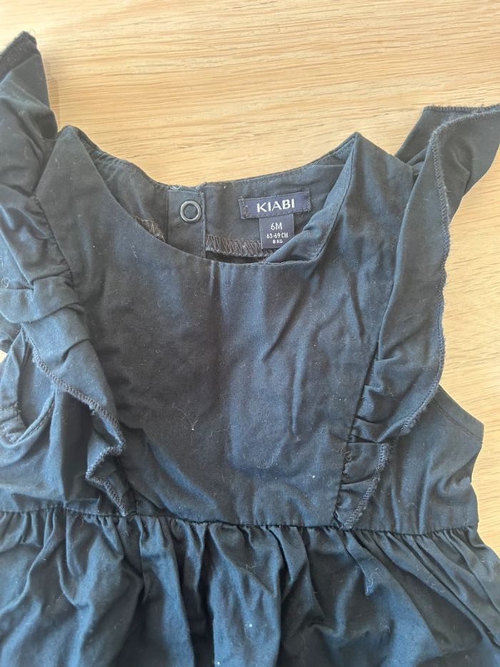 Robe bleu marine à volants 6 mois 63-69 cm 8kg. Marque Kiabi. Ouverture complète par pression dans le dos. Parfait état. #kiabifille6mois #robekiabi6mois