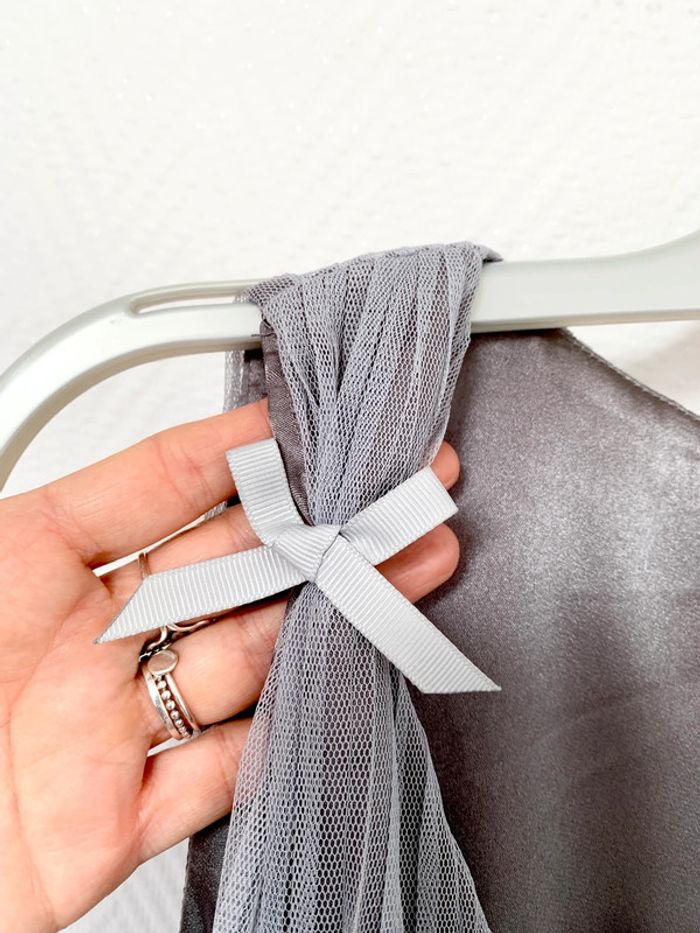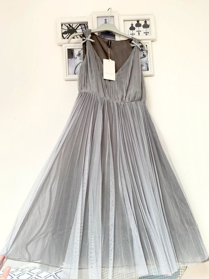 Neuve avec étiquette prix magasin 129,00€ Magnifique Jolie robe en tulle gris iceberg Doublée satin à l’intérieur Taille 36 Absolument ravissante portée Succès garanti 😍