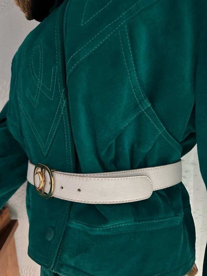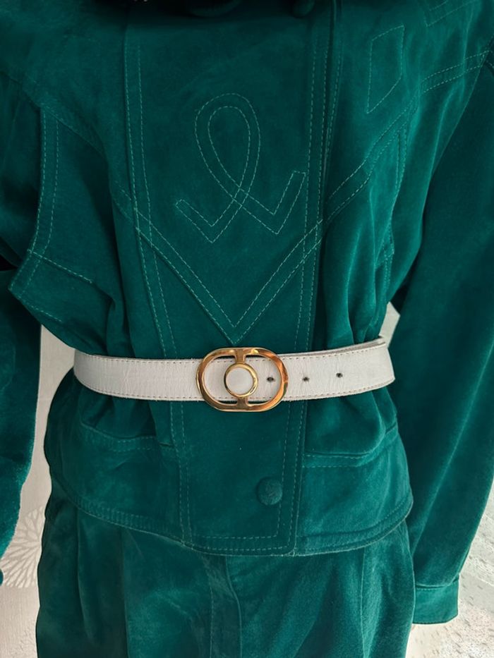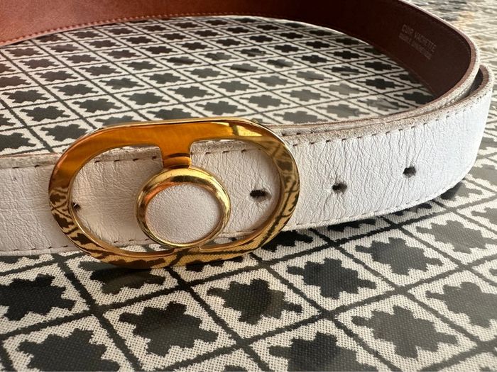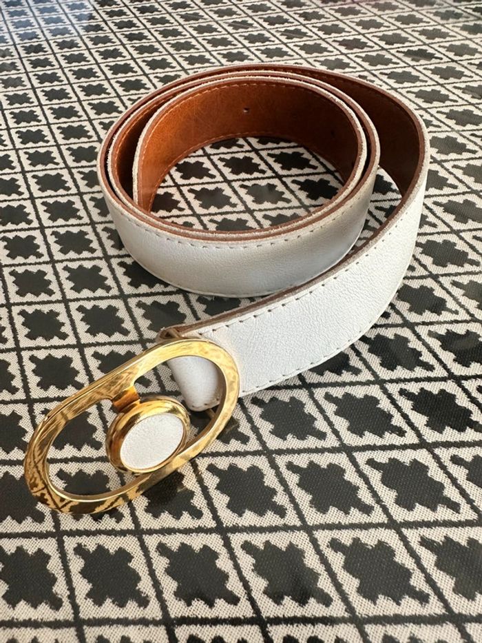 Ceinture en cuir blanche et doré Doublure synthétique En tbe général Convient du 38 au 42 Longueur totale bout à bout 97cm De la boucle jusqu’au premier trou 78cm Et le dernier trou est à 88cm #ceinturecuir #nounettes_accessoires #ceinturecuirblanc #ceintureblanchedore
