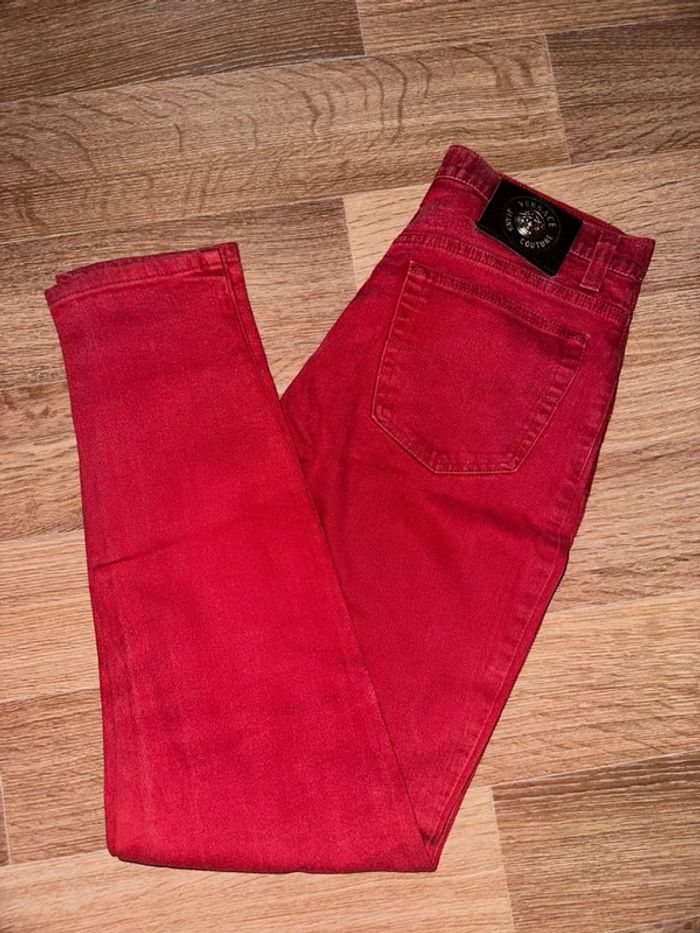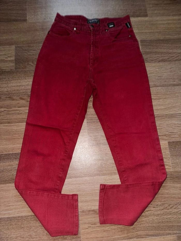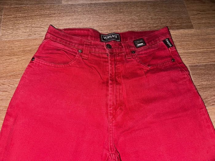 Jean Versace en tbe général Couleur ton rouge Taille haute #versacecouture #versacejeanscouture #versacejeans #versacevintage #vintage #versace90sjeanscouture