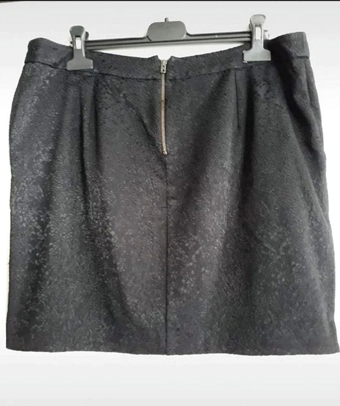 Noire effet motif dentelle Plus grand que taille indiquée sur étiquette Impossible de rendre la couleur réelle sur photo est bien noire pas délavée Le plissé devant fait léger effet bouffant Maison non fumeur sans animaux