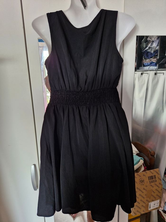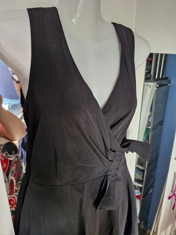 Son haut de robe cachecoeur rehaussé par un très beau noeud a la ceinture relève tout le chic de cette superbe robe patineuse bien évasée. Sa taille large élastique derrière donne un très beau design de dos également. Avec son tissu léger et extensible, elle est agréable à porter. Mesures 👇 Aisselles de 40cms a plat a 46cms en tirant Taille de 30cms a plat a 38cms en tirant Hauteur 79cms Je n'ai pas remarqué d'anomalie