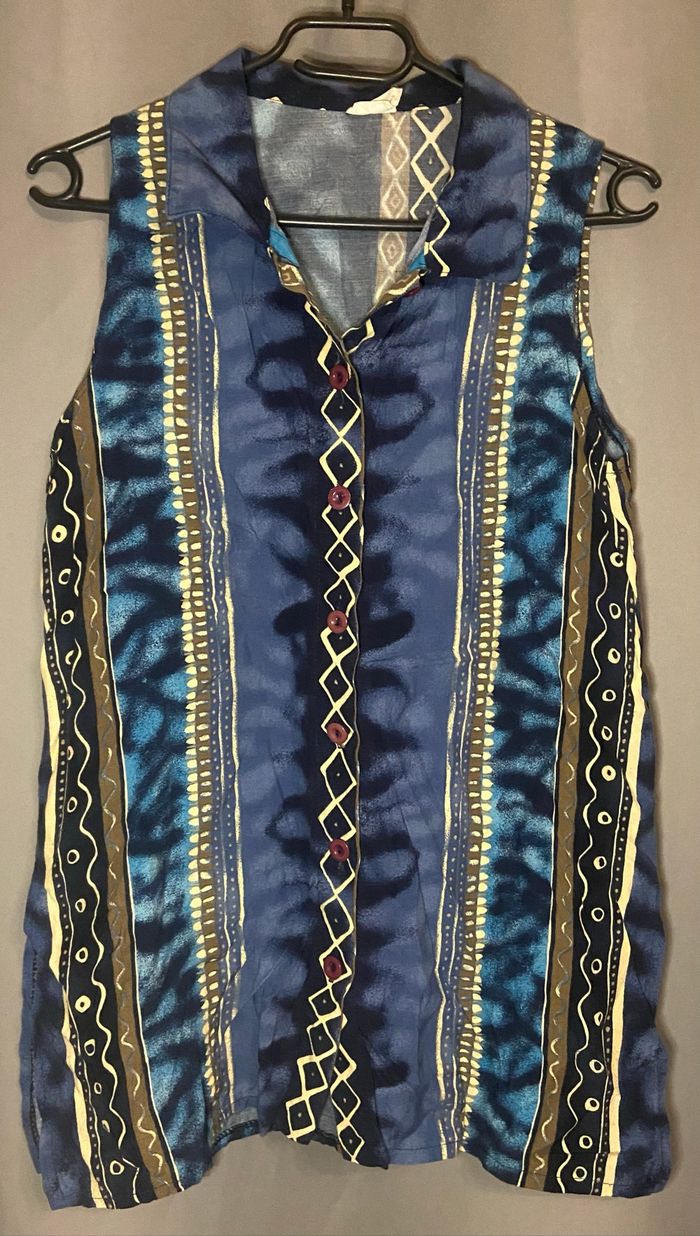 Débardeur à boutons »Michel »dans les tons de bleu,beige et marron à motifs. Il est noté sur l’étiquette taille 38 mais il correspond à du 36/38,en très bon état. ⛔️Merci de vérifier les mesures de vos vêtements avec celui-ci. Si vous avez le moindre doute, n’hésitez pas avant achat de me demander les mesures ou renseignements afin d’éviter tous désagréments. PS:Tous les vêtements sont lavés et repassés avant chaque envoi. 🔥🔥Réduction sur les lots activée🔥🔥 -5% de remise pour 2 articles. -10% de remise pour 3 articles. -20% de remise pour 5 articles.