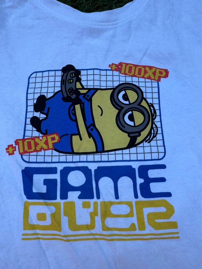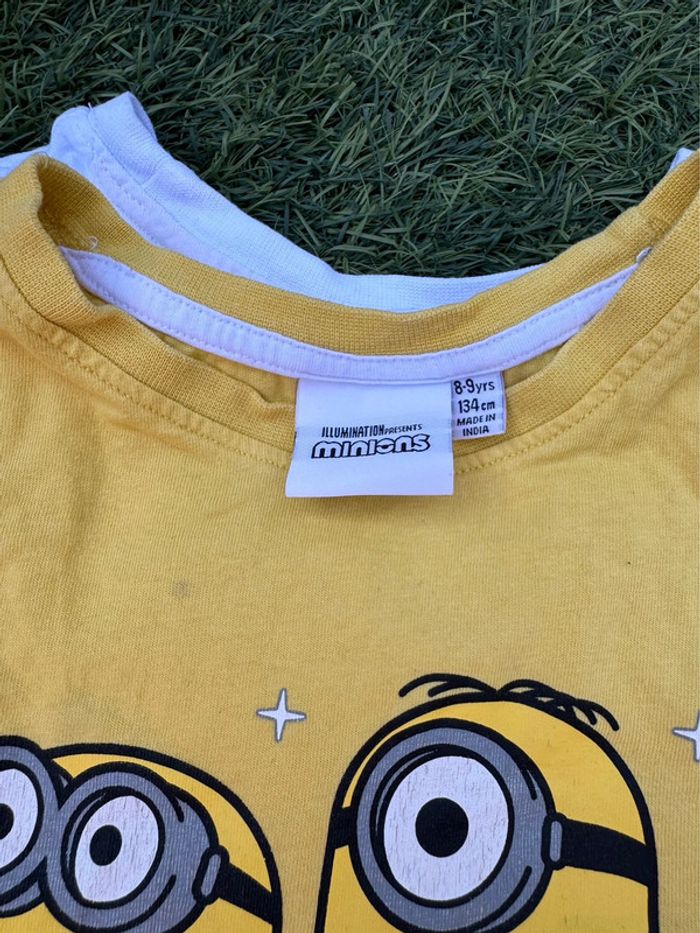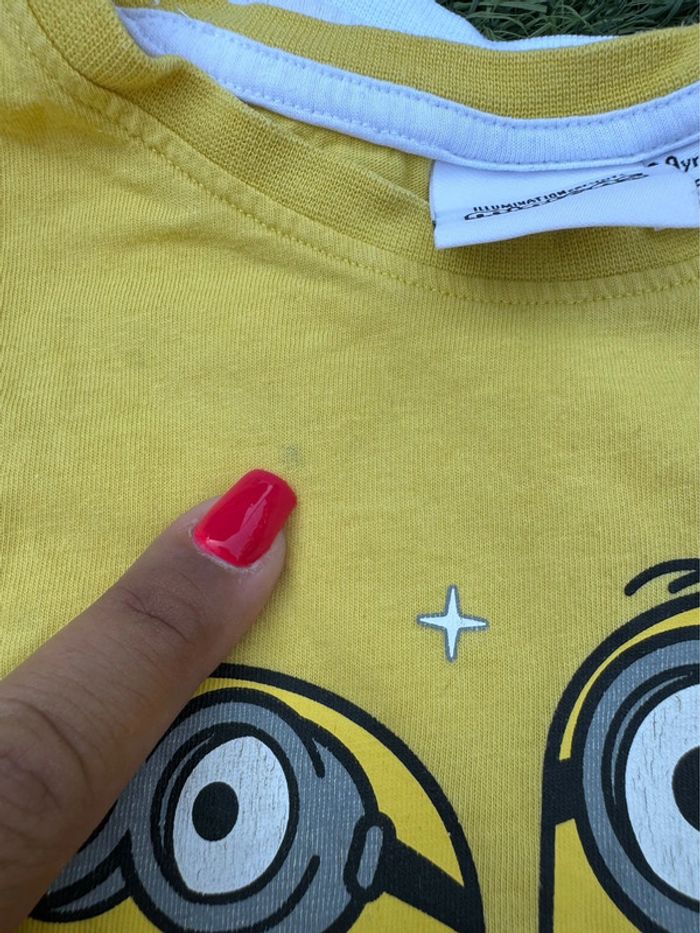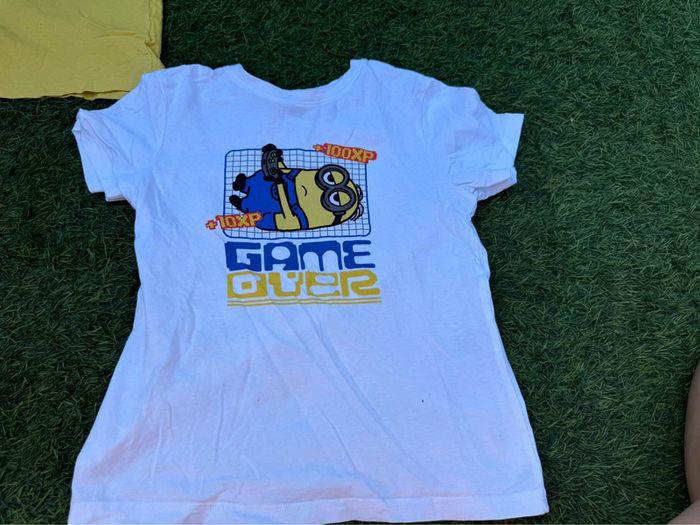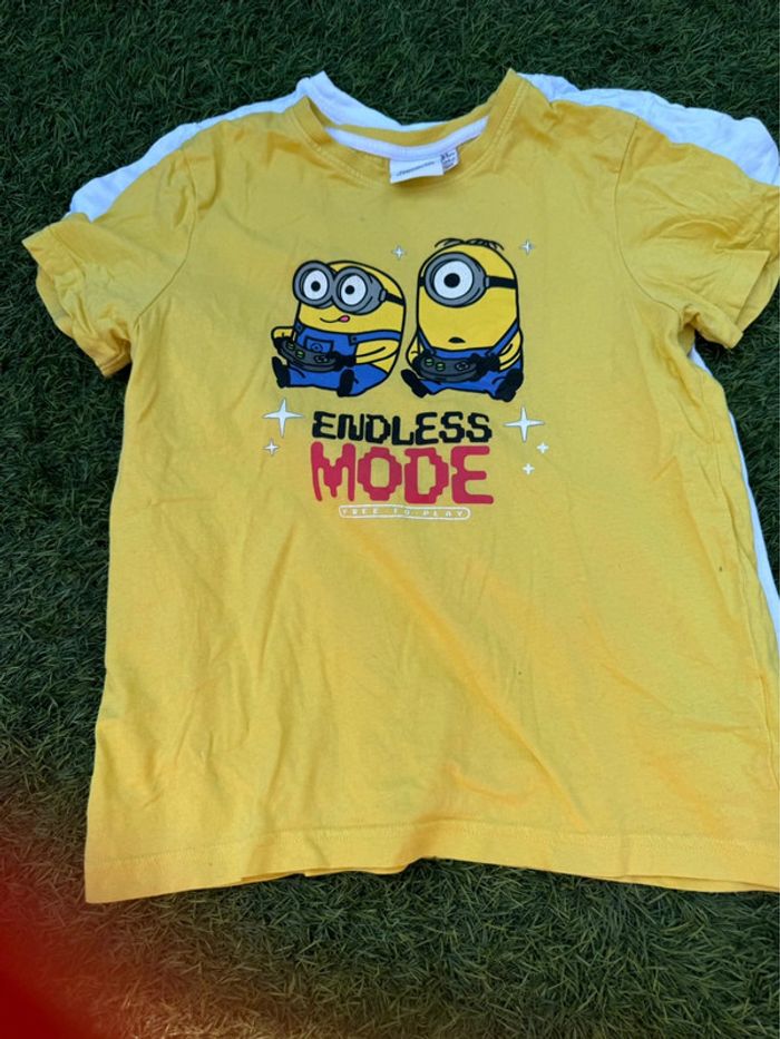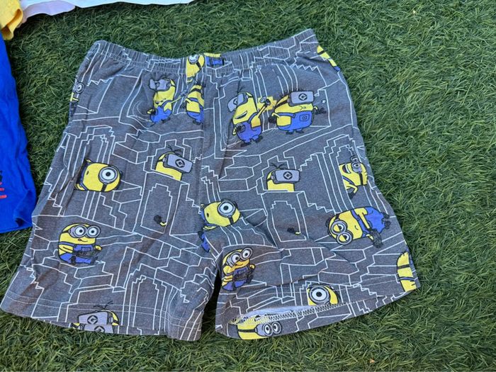 Taille 134 cm 2 shorts 2 hauts T-shirt jaune une légère tache noire (voir photo)