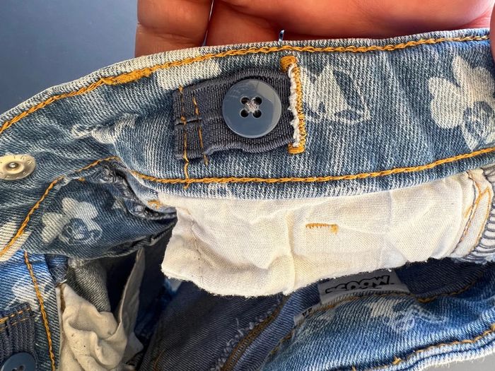 Taille quatre ans. Une pression et un zip à la taille. Ceinture ajustable Étiquette intérieur coupé. Bouton de rechange