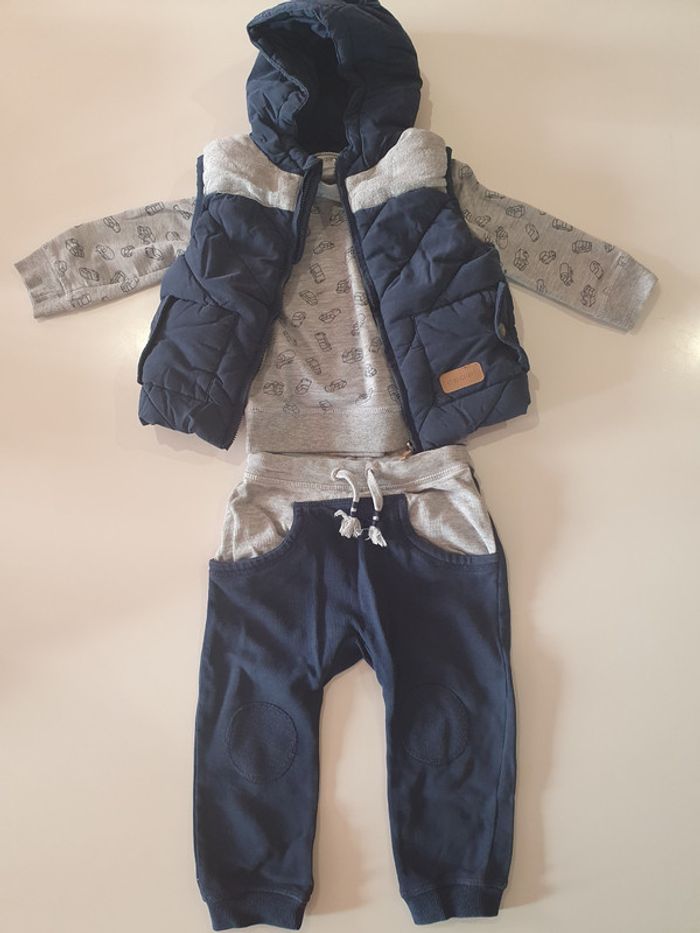 Un cordon à la taille. Pièces aux genoux. Idée de tenue avec un sweat et un doudoune en vente également (voir photo )